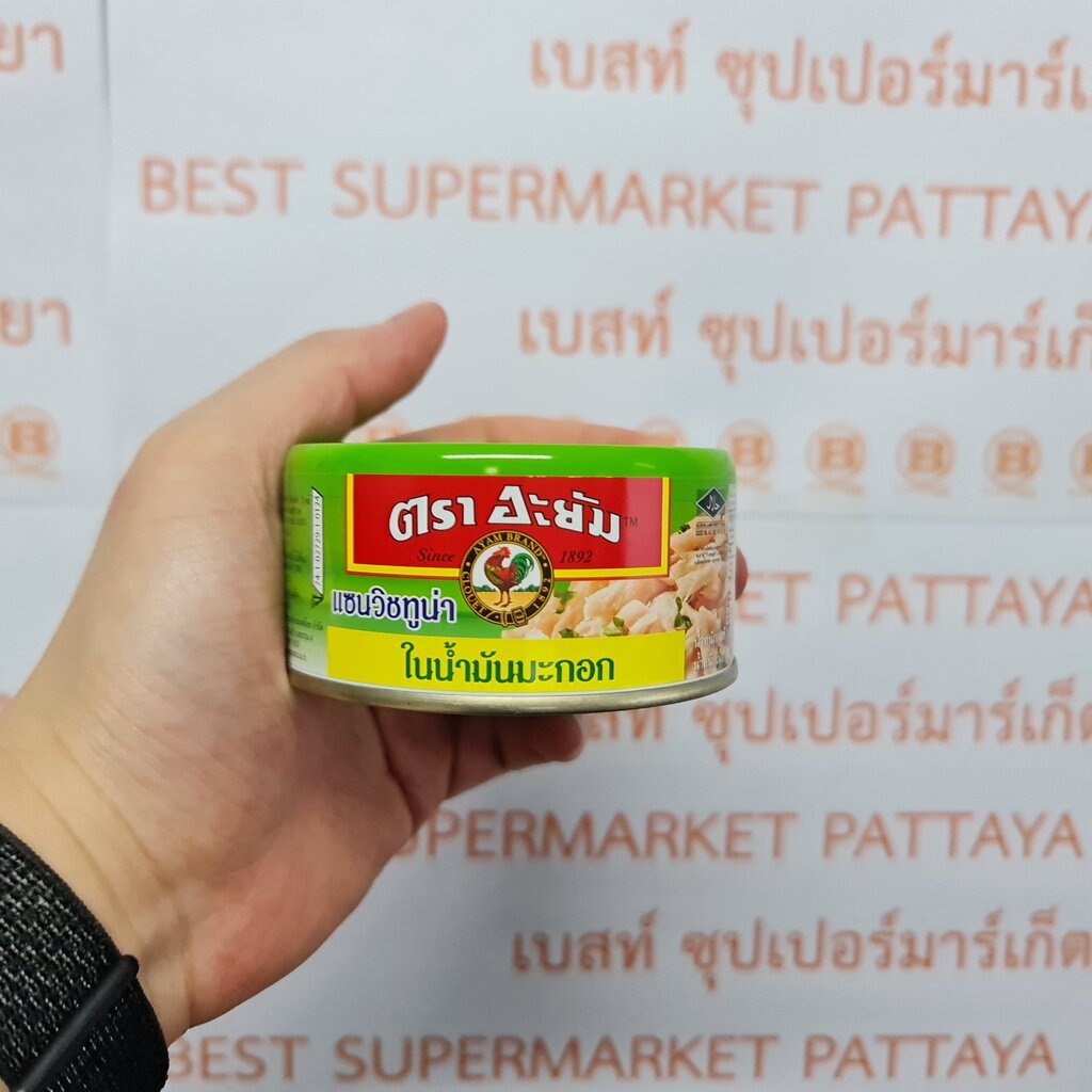 อะยัม แซนวิชทูน่า ในน้ำมันมะกอก น้ำหนักสุทธิ 150 กรัม Ayam Tuna Sandwich in Extra Virgin Olive Oil Net Weight 150 g.