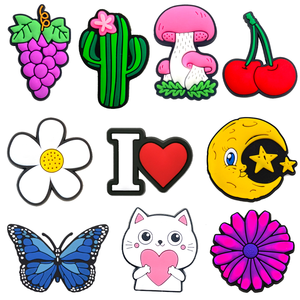 MEIDJ ชาร์มส์ หัวเข็มขัดพลาสติก PVC สำหรับรองเท้าแตะ ออกแบบลายการ์ตูนดอกไม้