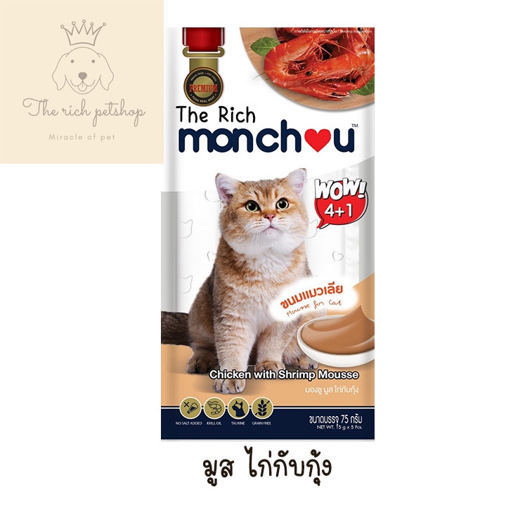 (แพ็ค) Monchou มองชู ขนมแมวเลีย ขนาด 75 กรัม (5ซอง/แพ็ค)💋ส่งเมื่อซื้อ 100 บาทไม่รวมค่าส่ง 💋