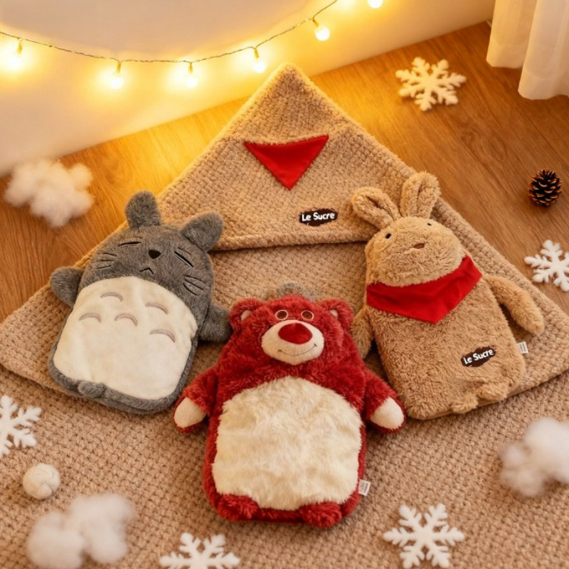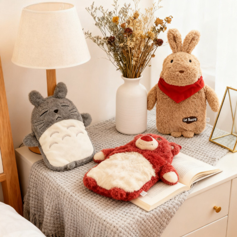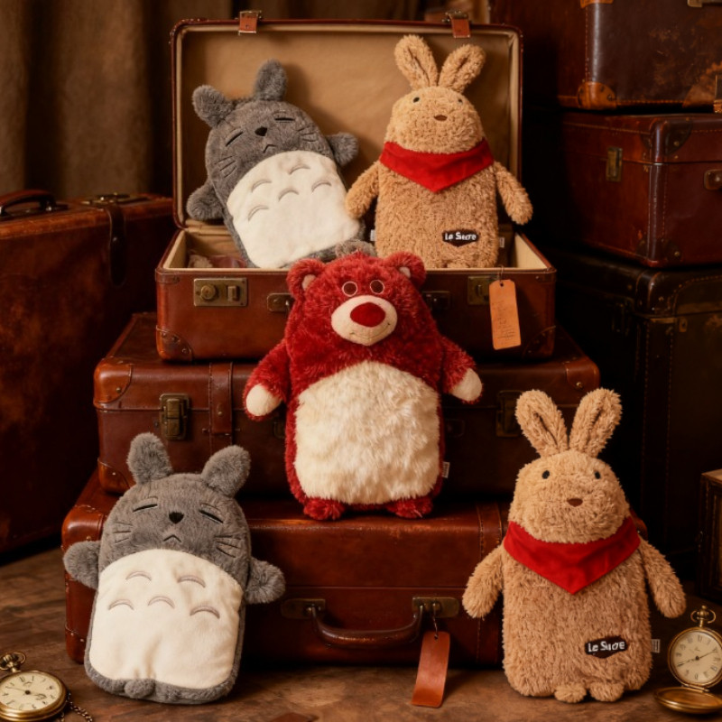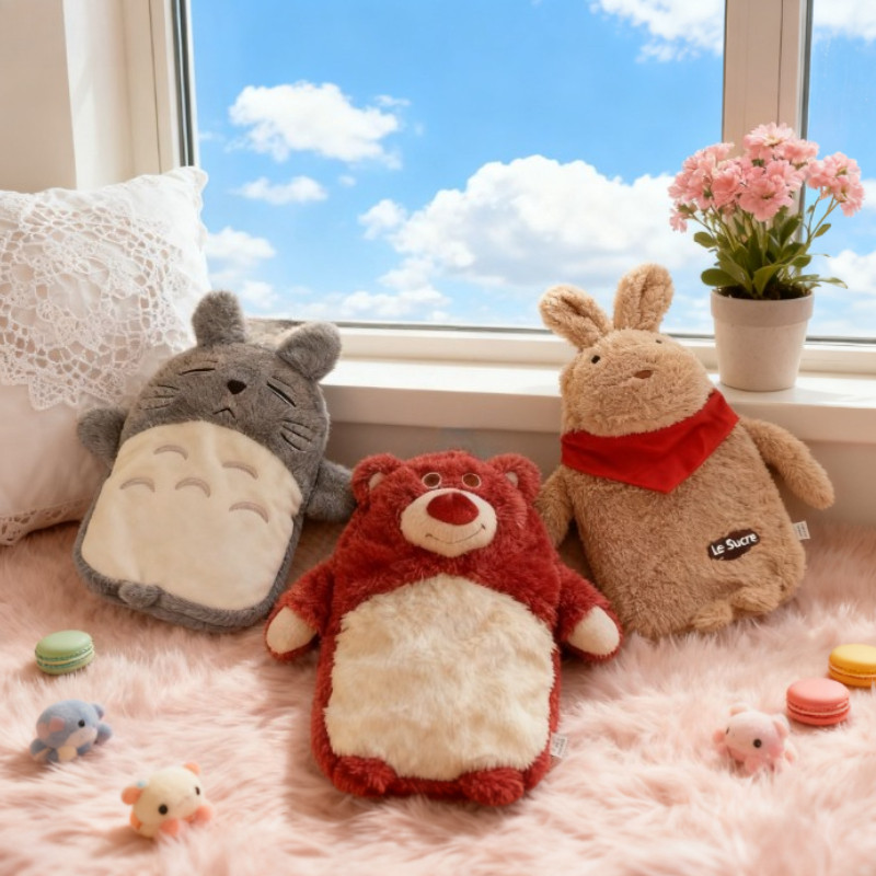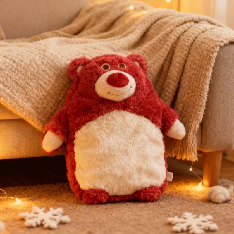 1000ML ถุงน้ำร้อนขนนุ่ม ถุงน้ำร้อนหมีสตรอเบอร์รี่เติมน้ำ น่ารักอุ่นมือกันระเบิด
