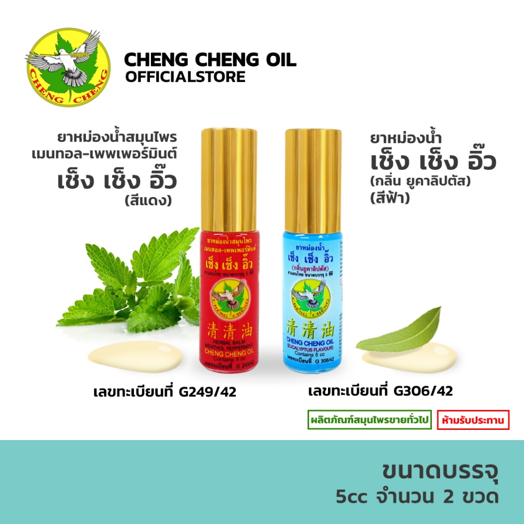 [ชุด 2 ขวด] เช็ง เช็ง อิ๊วกลิ่นเมนทอล-เพพเพอร์มินต์(สีแดง)+เช็ง เช็ง อิ๊วกลิ่นยูคาลิปตัส(สีฟ้า)5 ml