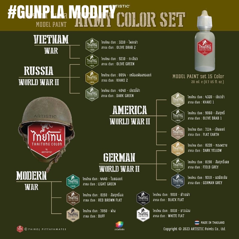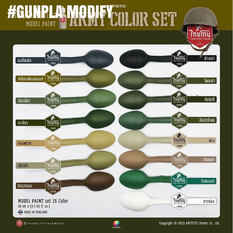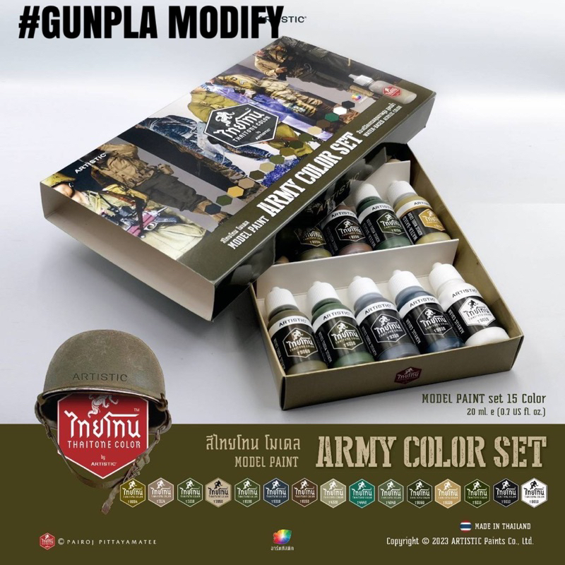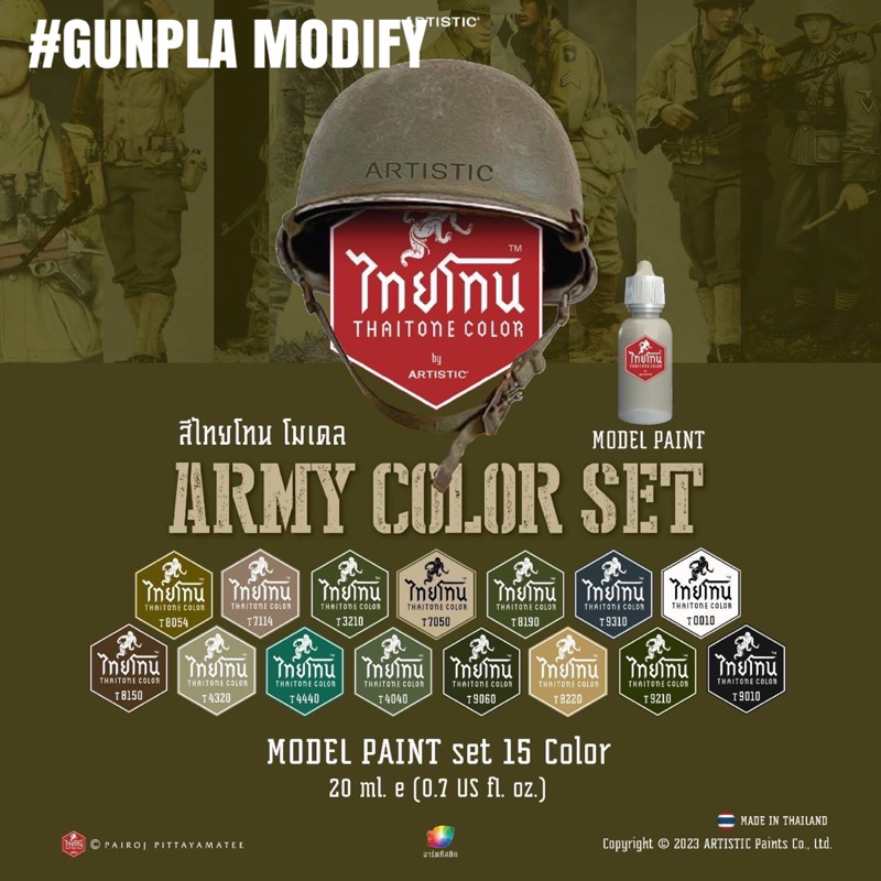 Thaitone ชุดสี Military สีอะคริลิคสูตรน้ำคุณภาพสูง ไทยโทน ขนาด 20 ml บรรจุ 15 ขวด