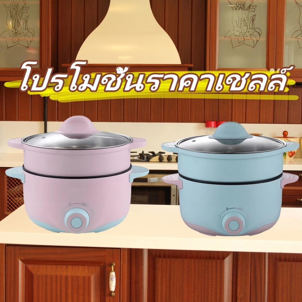 มัลติฟังก์ชั่ไม่ติดกระทะไฟฟ้า การออกแบบป้องกันการลวกหอพักใช้หม้อร้อนไฟฟ้าสามารถใช้สำหรับหม้อร้อน, นึ่ง,ระเบิด, ต้มซุปฯลฯ