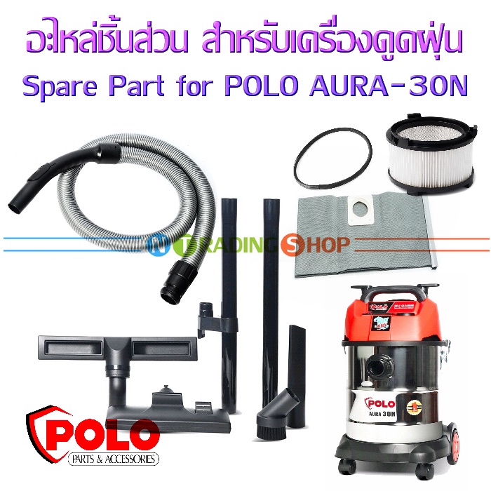 อะไหล่ ถุงผ้าเก็บฝุ่น ไส้กรอง โอริง สาย ท่อดูดฝุ่น หัวดูด อะไหล่อื่นๆ สำหรับเครื่องดูดฝุ่น POLO รุ่น AURA-30N