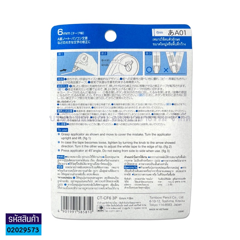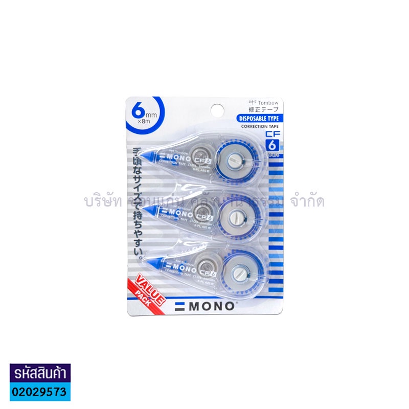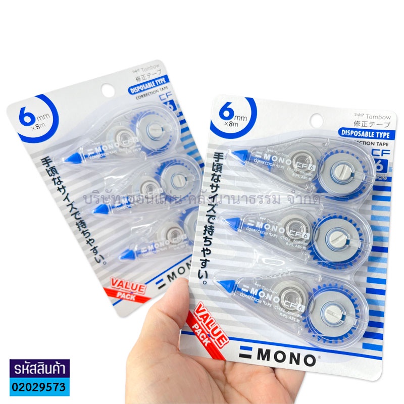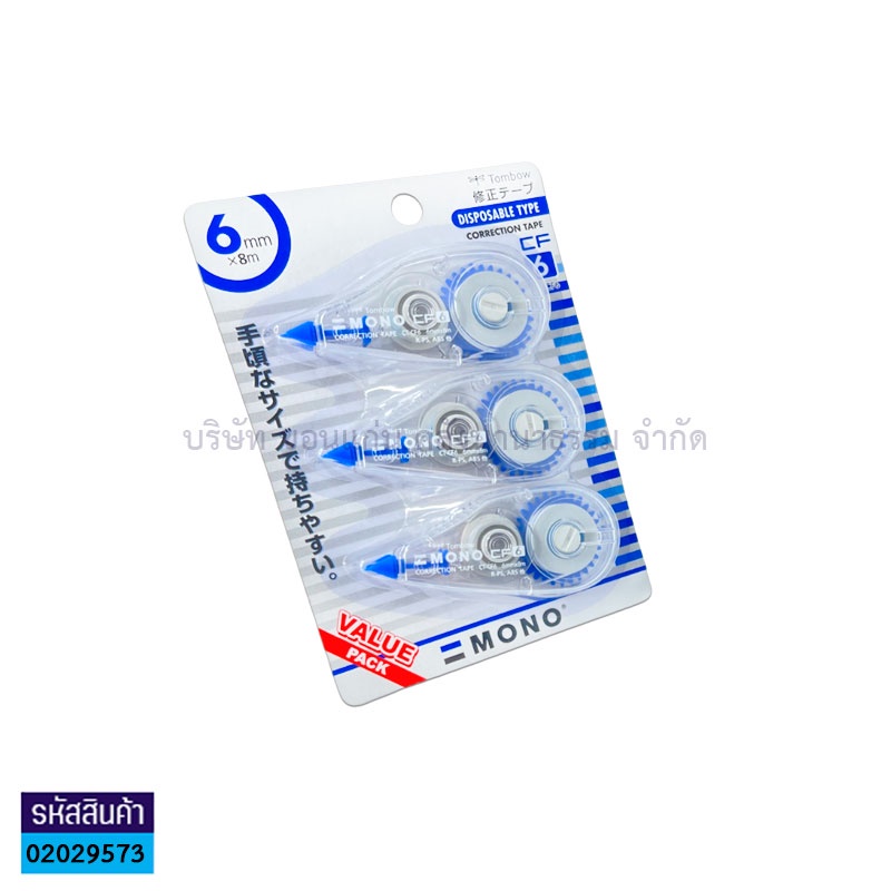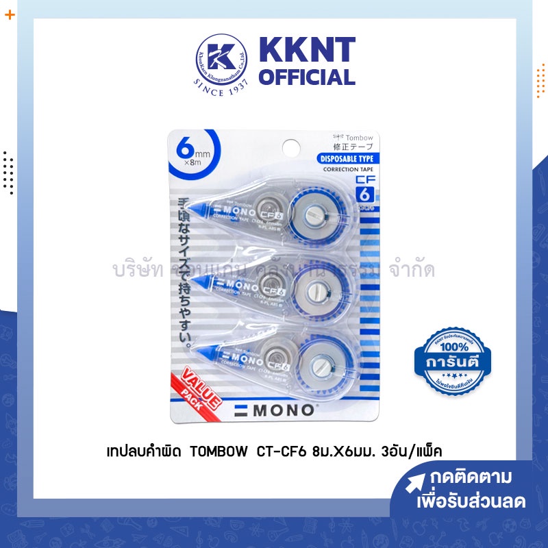 💙KKNT | เทปลบคำผิด Tombow รุ่น CT-CF6 ขนาด 8ม.x6มม. บรรจุ 3ชิ้น แพ็คประหยัด (ราคา/แพ็ค)