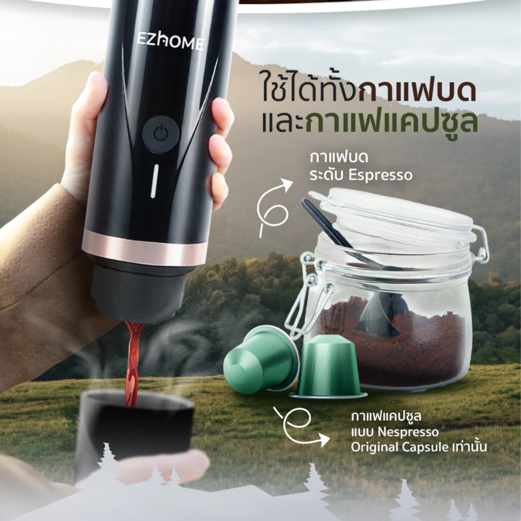 [Hot Item+โค้ดลด30.-] EZhome Handheld Espresso Maker รุ่น EL06 เครื่องชงกาแฟแบบพกพา แบบแคปซูลเนสเพรสโซ,กาแฟบด