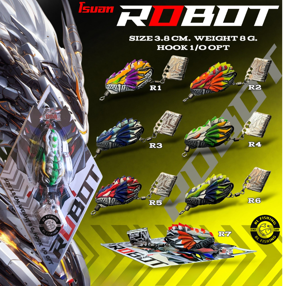 กบยาง Robot มาใหม่ ค่าย USA นาด 3.8 ซม. น้ำหนัก 8 กรัม เบ็ด 1/0 มีให้เลือก 7 สี