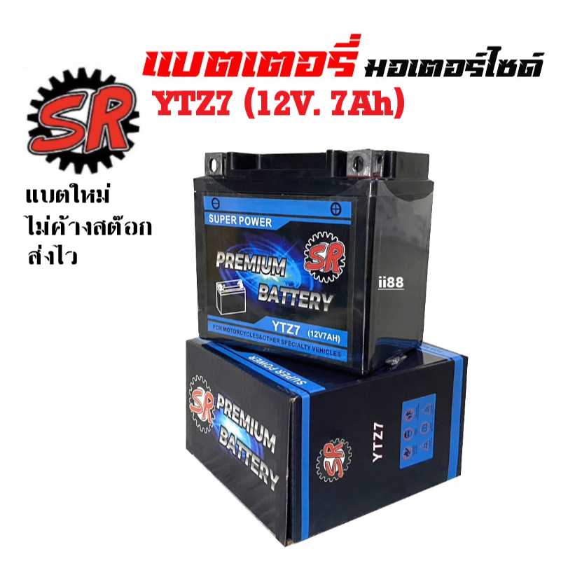 แบตเตอรี่ Yamaha Grand Filano Hybrid แบตเตอรี่มอเตอร์ไซค์ (12V7Ah) ผลิตในไทยมาตรฐานส่งออก ยี่ห้อSR (YTZ7) แกรนด์ ฟิลาโน่