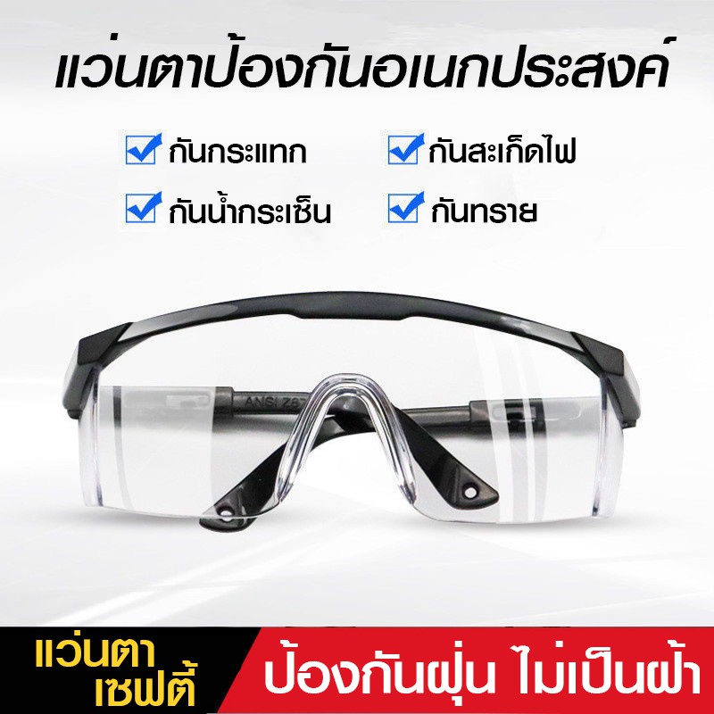 แว่นตาเซฟตี้ แว่นนิรภัย ป้องกันฝุ่น สารเคมี สะเก็ดไฟ ไม่เป็นฝ้า