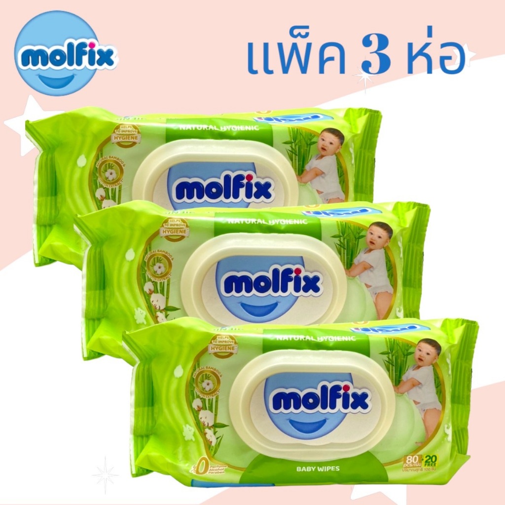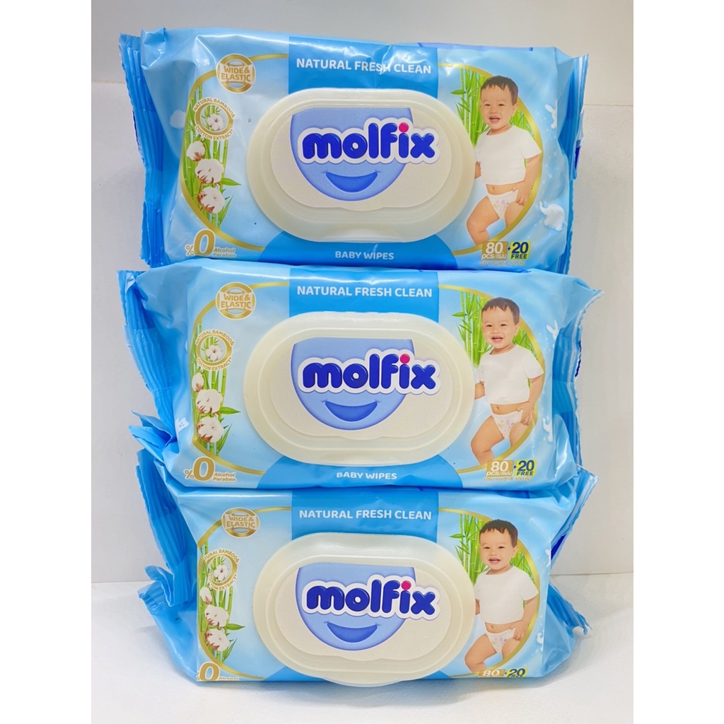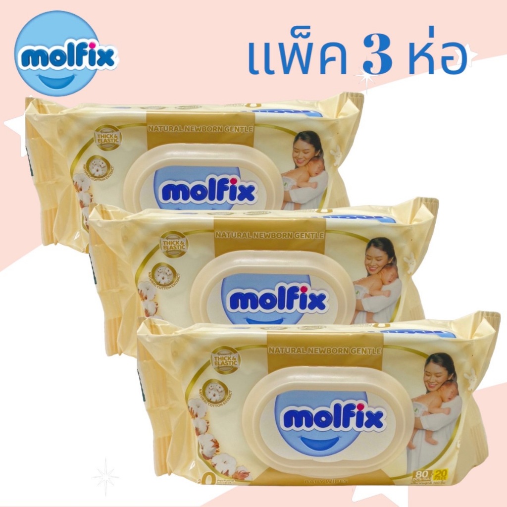 (แพ็ค3ห่อสุดคุ้ม) Molfix Wet Wipes ทิชชูเปียกจากธรรมชาติ อ่อนโยน ปลอดภัยกับผิวลูกน้อย 100 แผ่น
