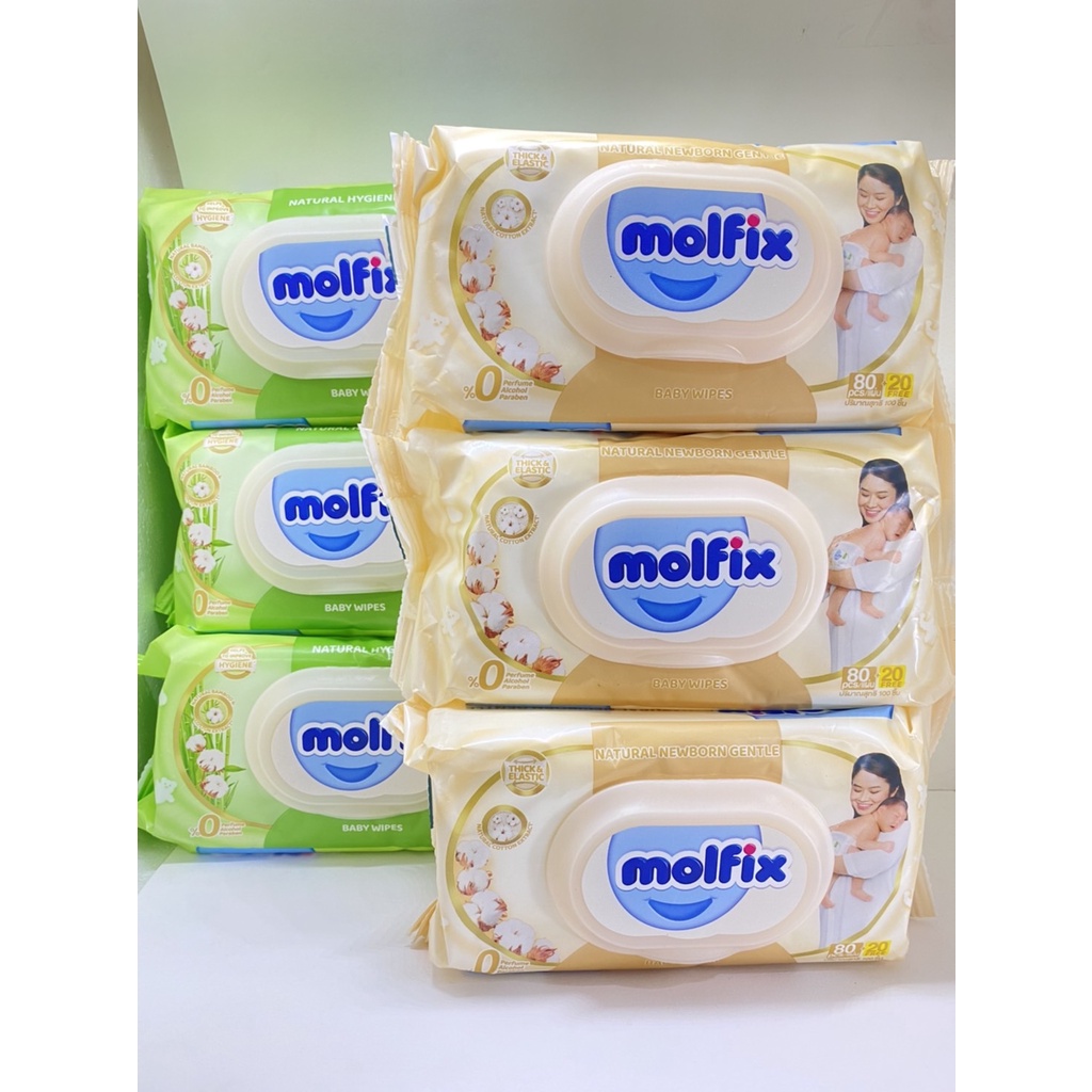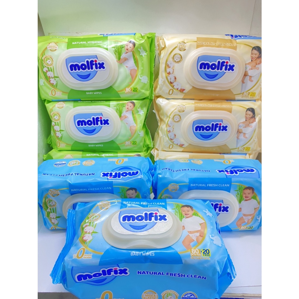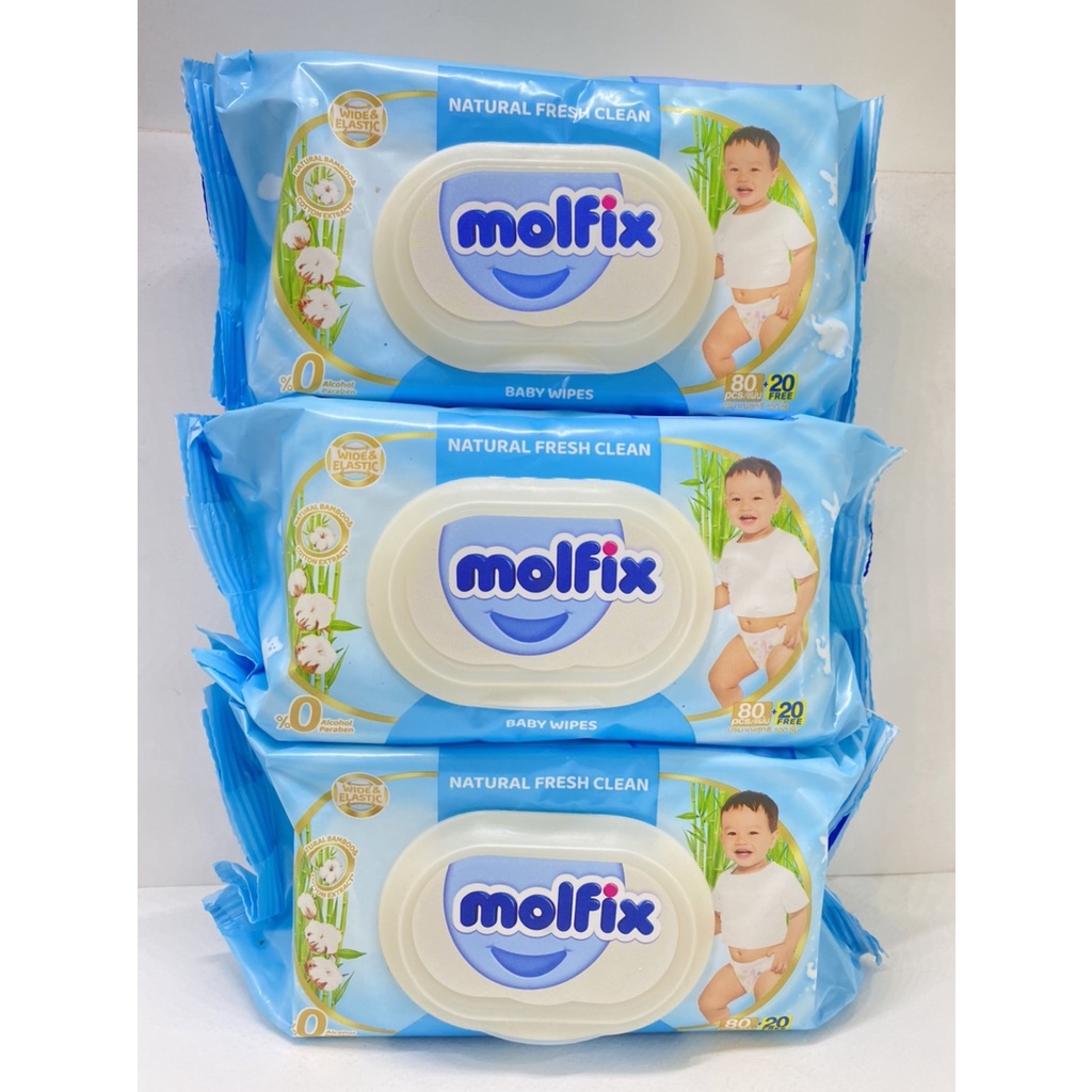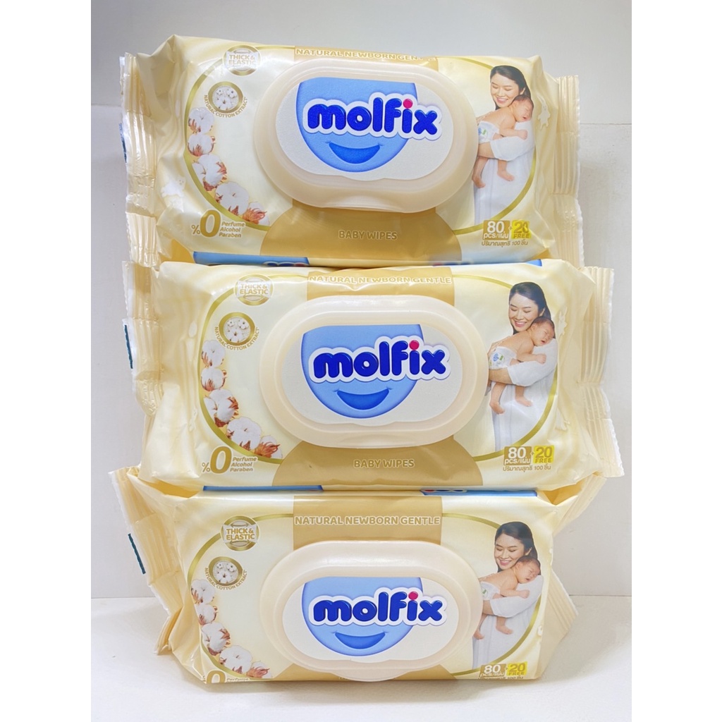 (แพ็ค3ห่อสุดคุ้ม) Molfix Wet Wipes ทิชชูเปียกจากธรรมชาติ อ่อนโยน ปลอดภัยกับผิวลูกน้อย 100 แผ่น