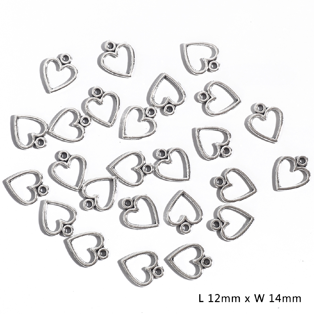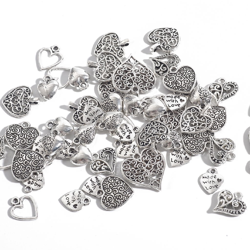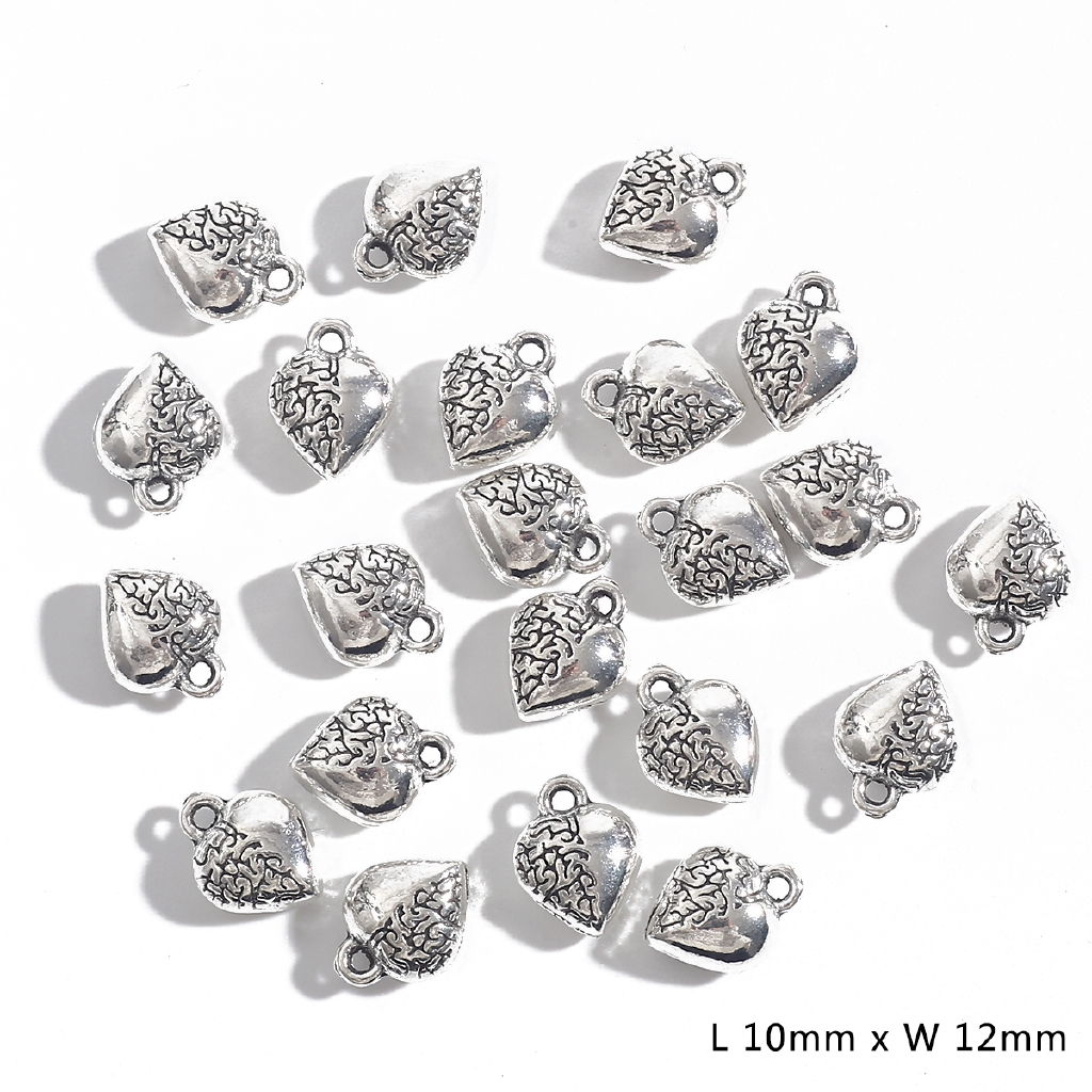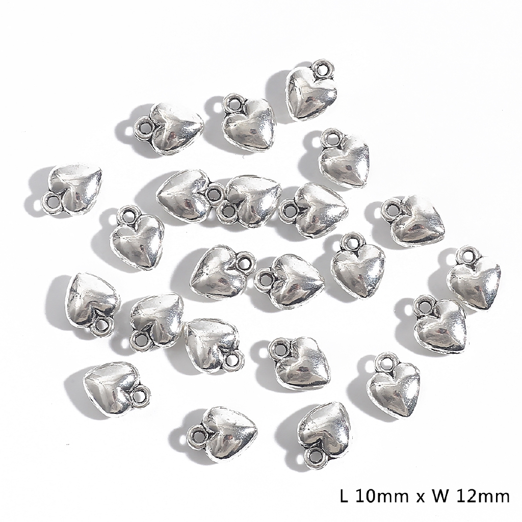 10-50 / แพ็ค จี้สร้อยคอ สร้อยข้อมือ ลูกปัดโลหะ รูปหัวใจ สีเงิน DIY