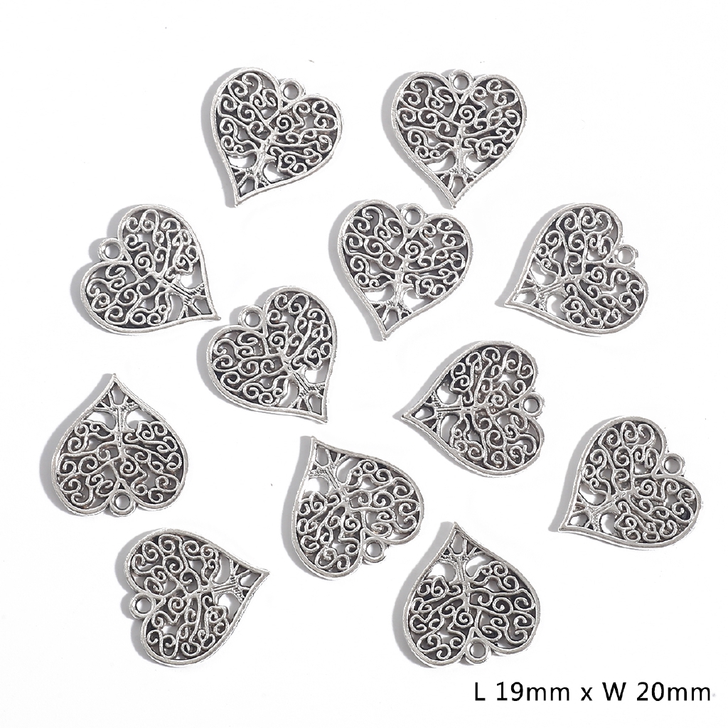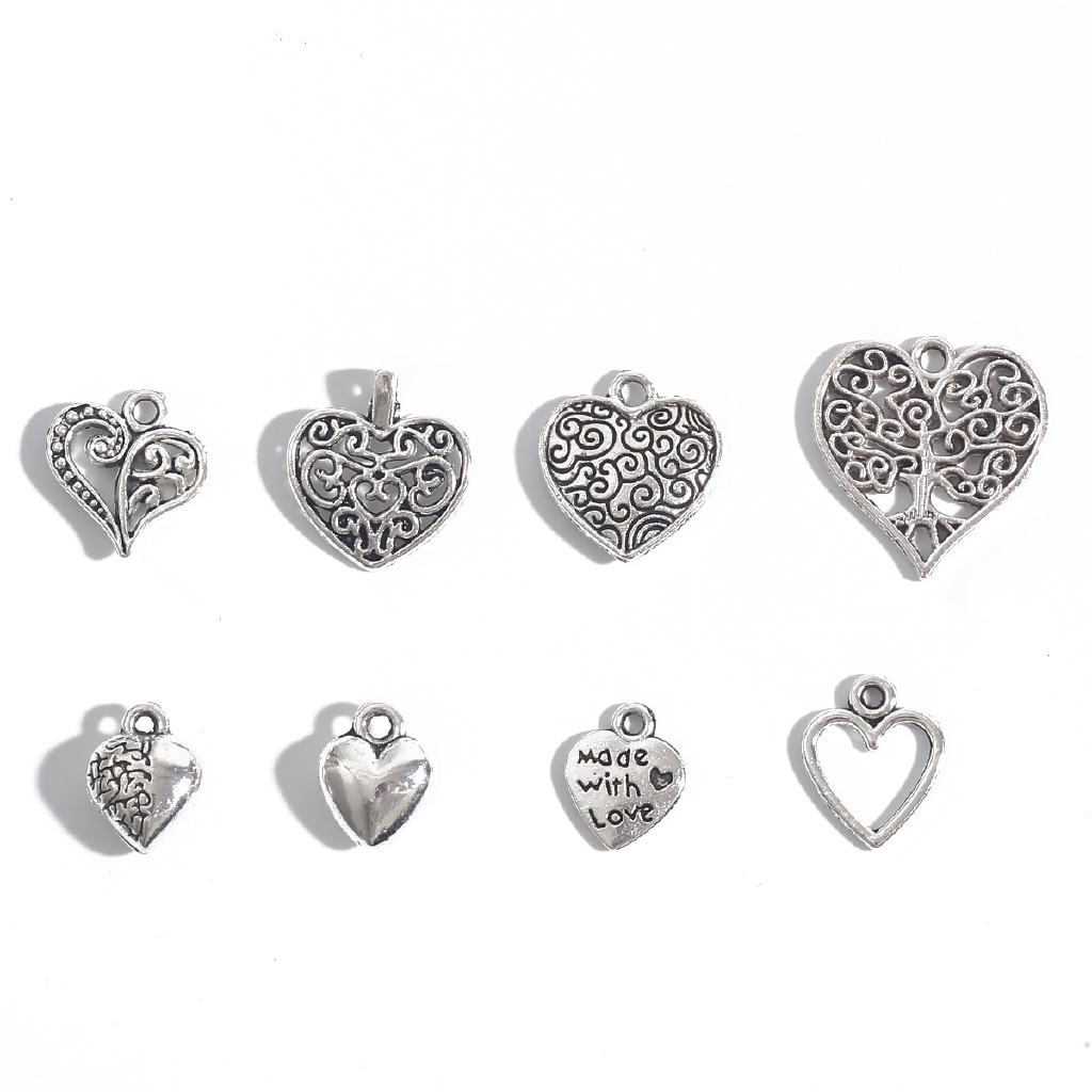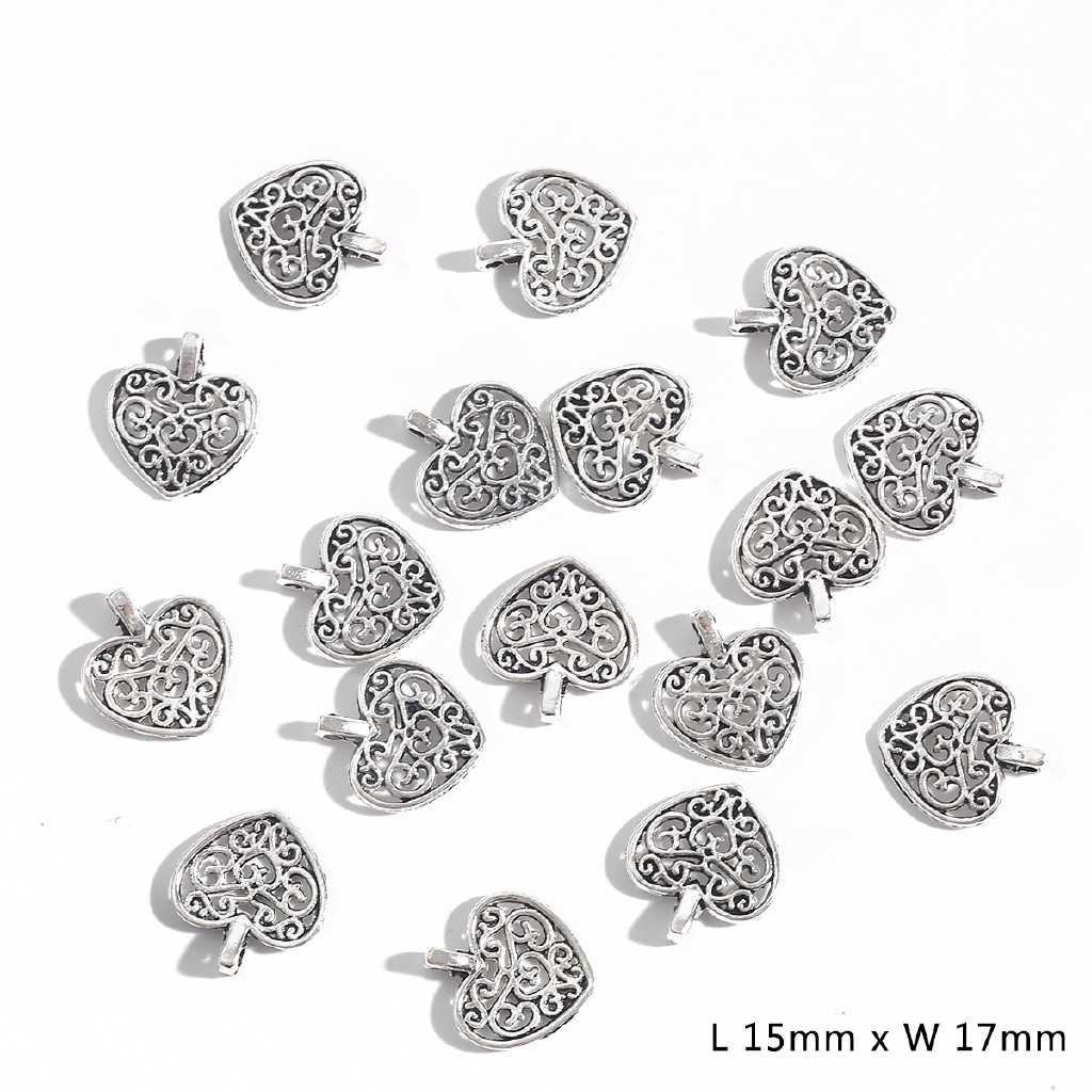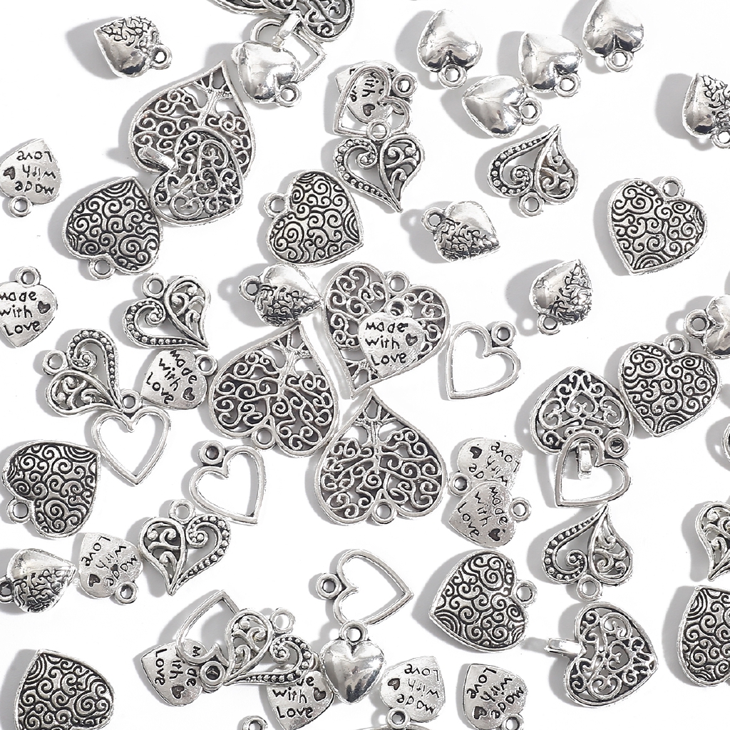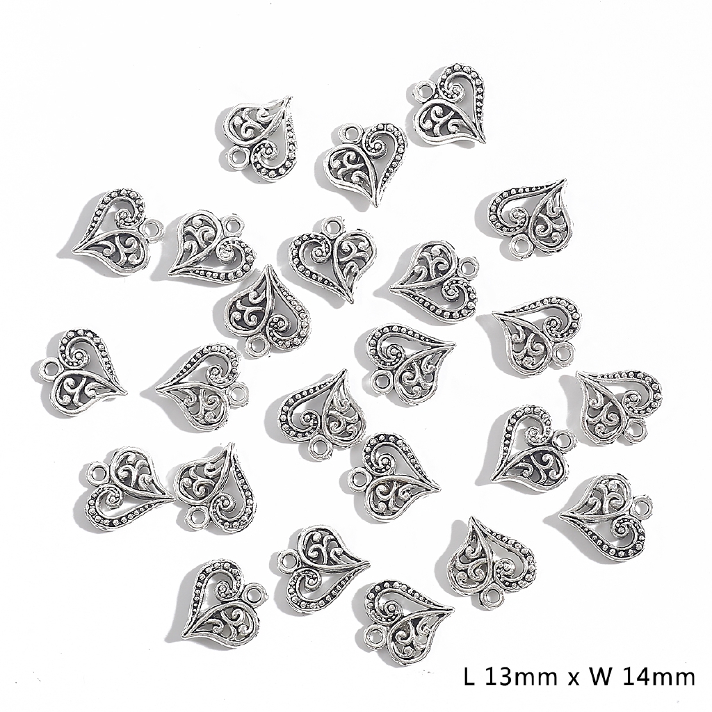 10-50 / แพ็ค จี้สร้อยคอ สร้อยข้อมือ ลูกปัดโลหะ รูปหัวใจ สีเงิน DIY