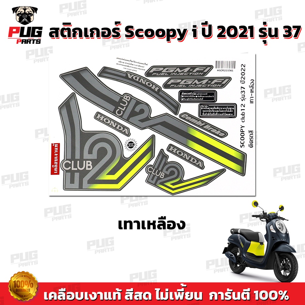 สติกเกอร์Scoopy i ปี 2022 รุ่น 37 (สีสด เคลือบเงาแท้) สติกเกอร์สกู๊ปปี้ ไอ ปี 2022 รุ่น 37 สติ๊กเกอร์Scoopy-i Club 12