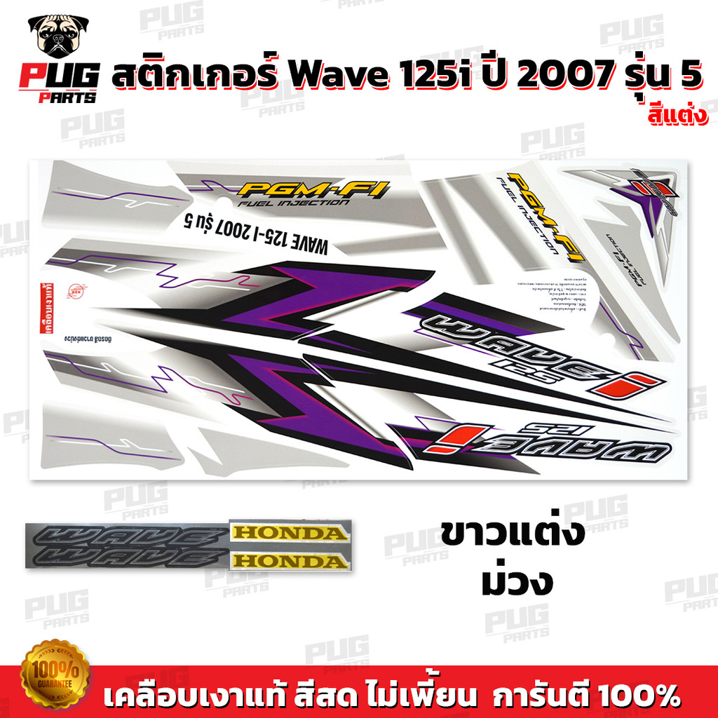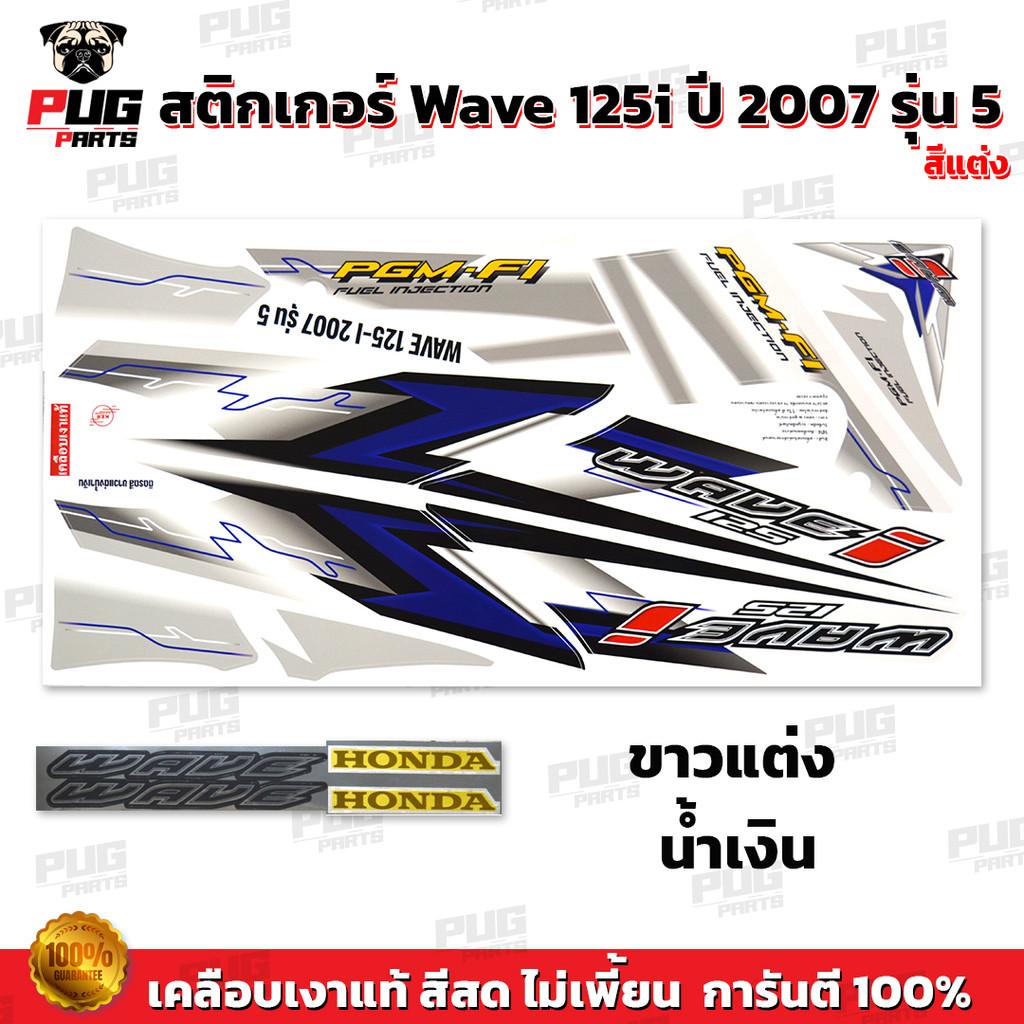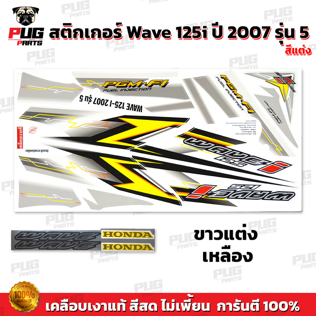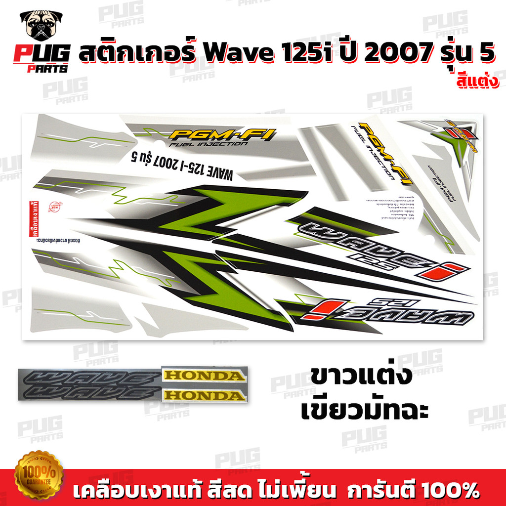 สติกเกอร์เวฟ125i ปี2007 รุ่น5 แต่ง (สีสด เคลือบเงาแท้) สติกเกอร์Wave125i ปี2007 รุ่น5 สติ๊กเกอร์เวฟ125i ปี2007 รุ่น5