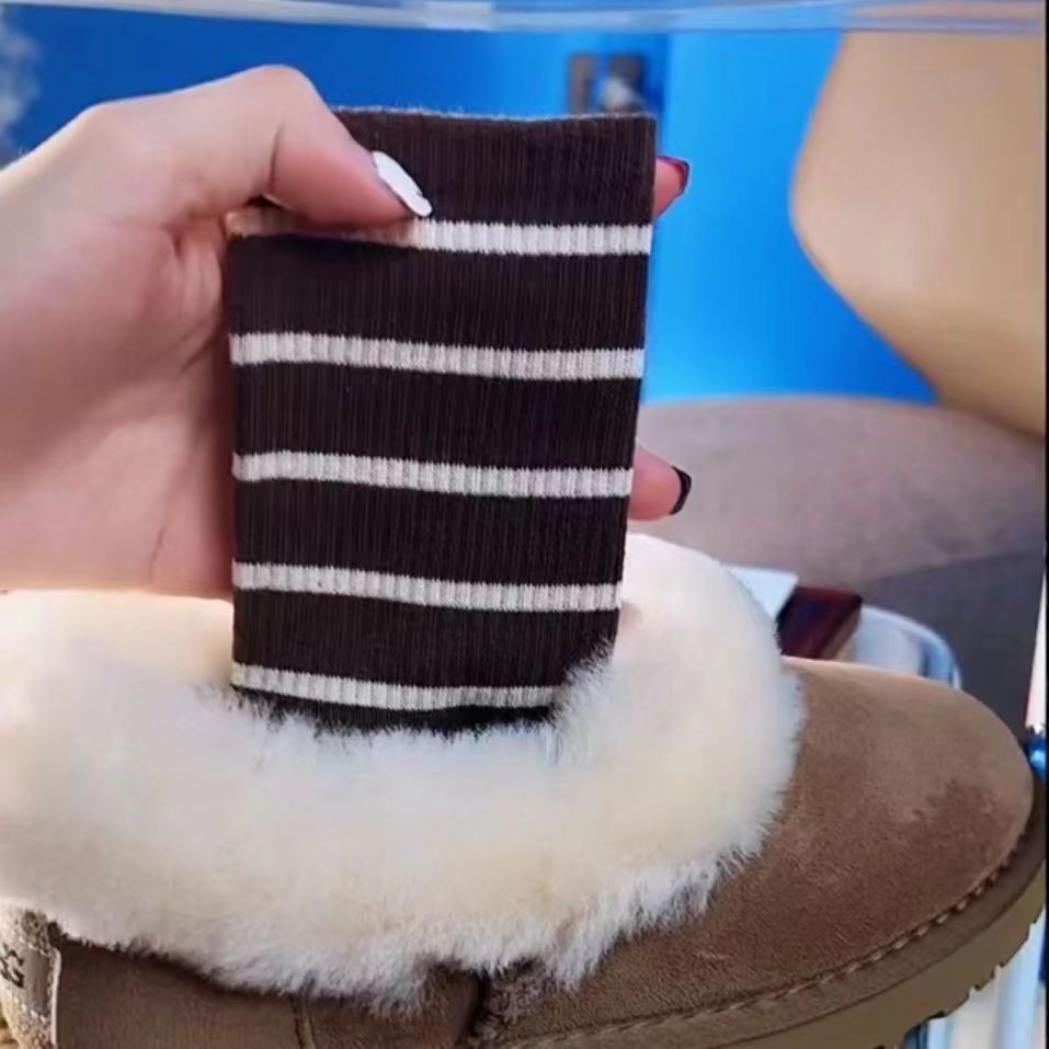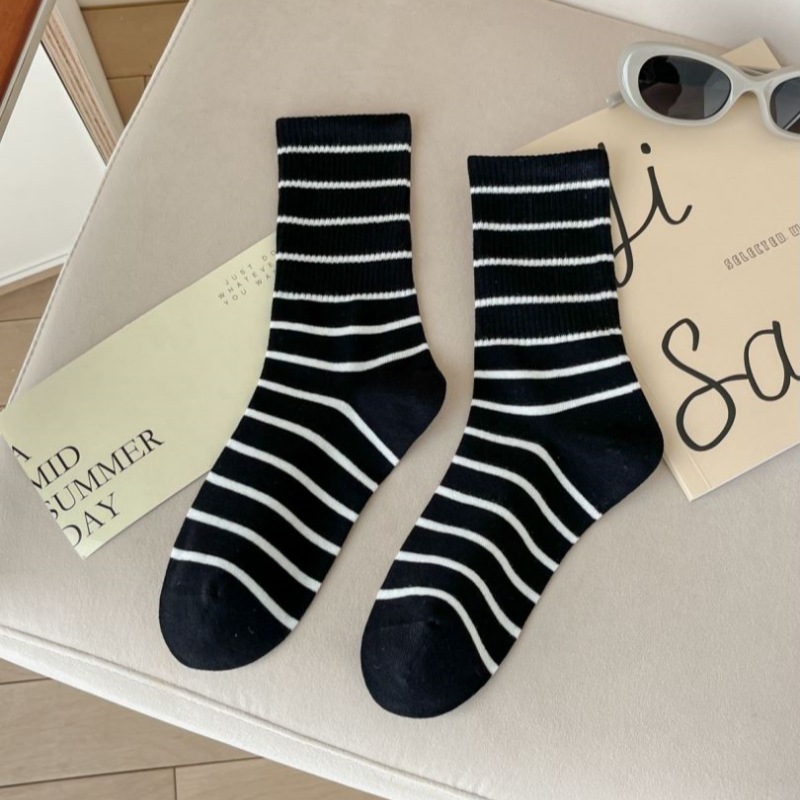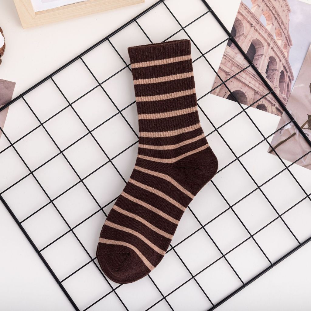 (W-203) ถุงเท้ายาว กันหนาว แฟชั่น สีพื้น โทนน้ำตาล แต่งลายขวาง เนื้อผ้านิ่ม ใส่สบาย