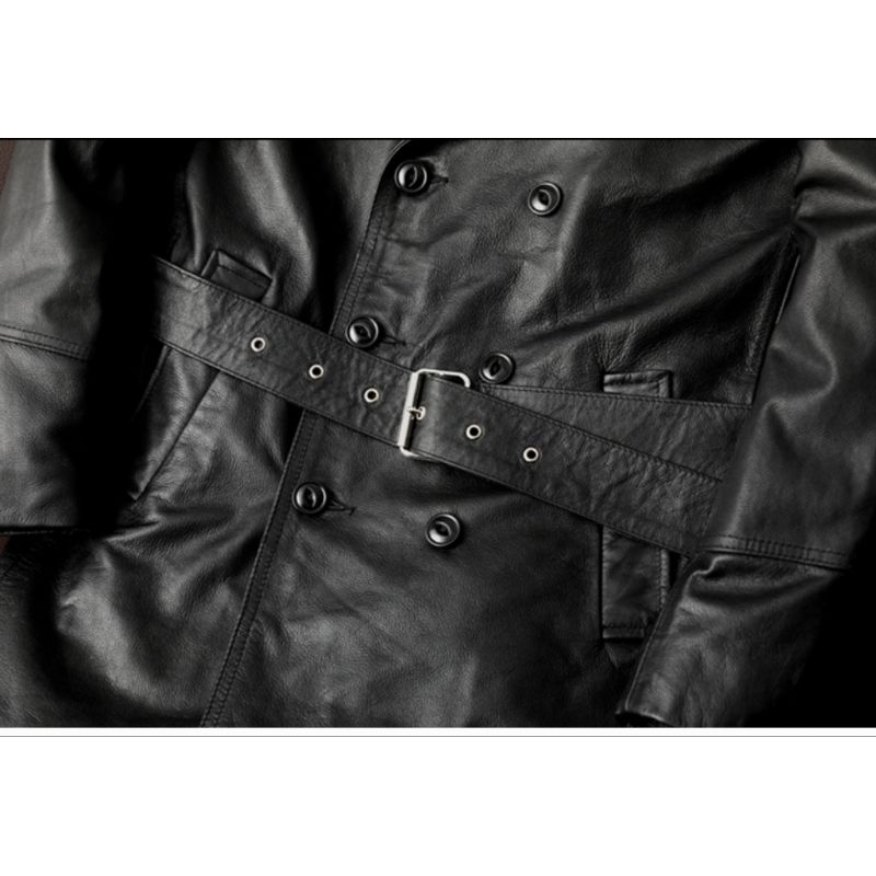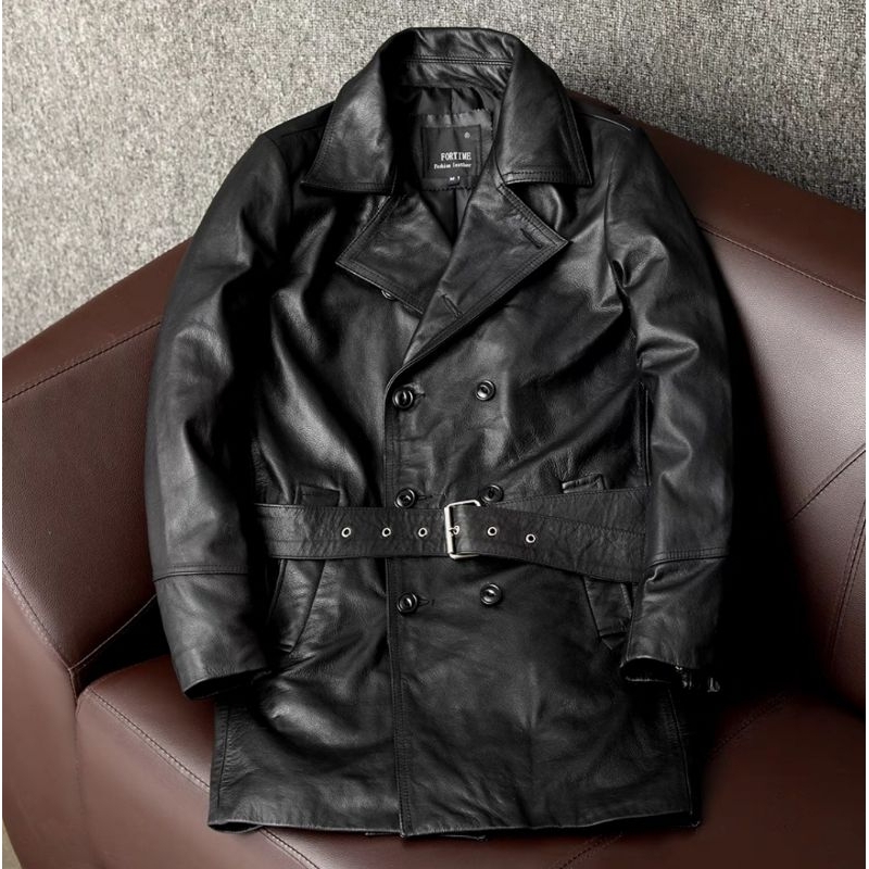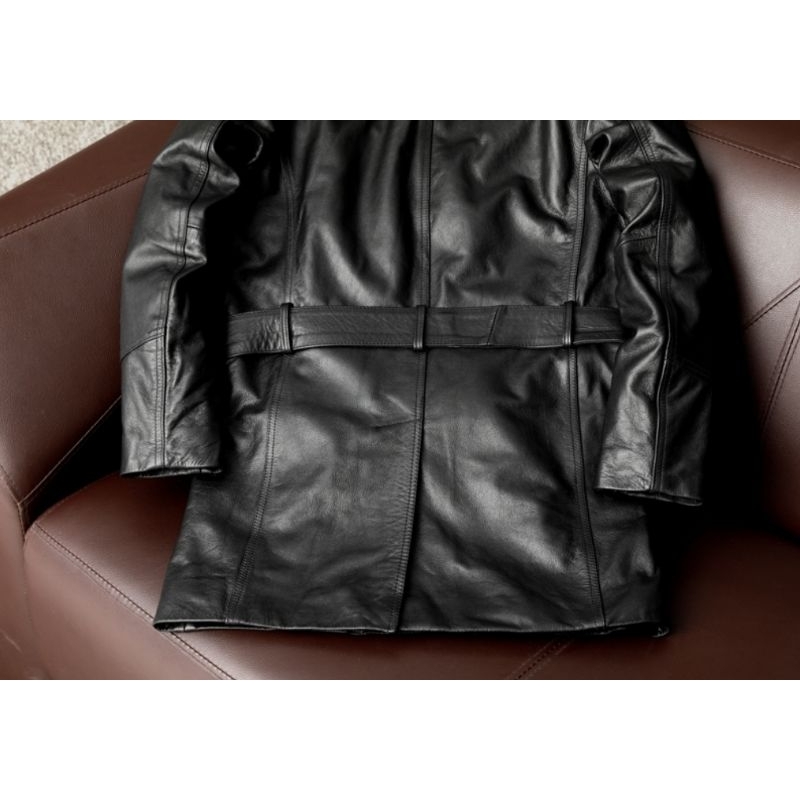 เสื้อแจ็คเก็ตหนังแท้ สีดำ ตัวยาว