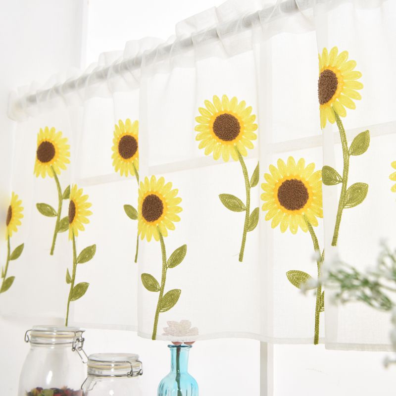 COD ผ้าม่านครึ่งหน้าต่าง ผ้าม่านเคาท์เตอร์ครัว สไตล์มินิมอล ผ้าโปร่ง รูปแบบของดอกไม้ ราคาเฉพาะม่าน