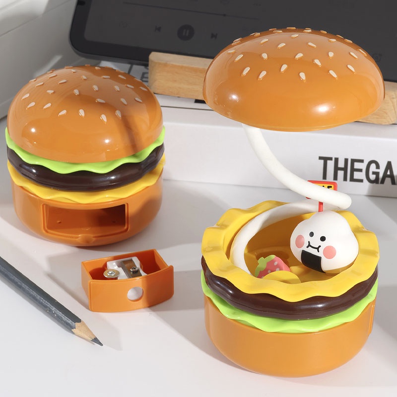โคมไฟตั้งโต๊ะ ไฟ led แฮมเบอร์เกอร์ไฟกลางคืนขนาดเล็ก เครื่องเหลาดินสอ โคมไฟหัวเตียง โคม ไฟแบบชาร์จ รองรับได้