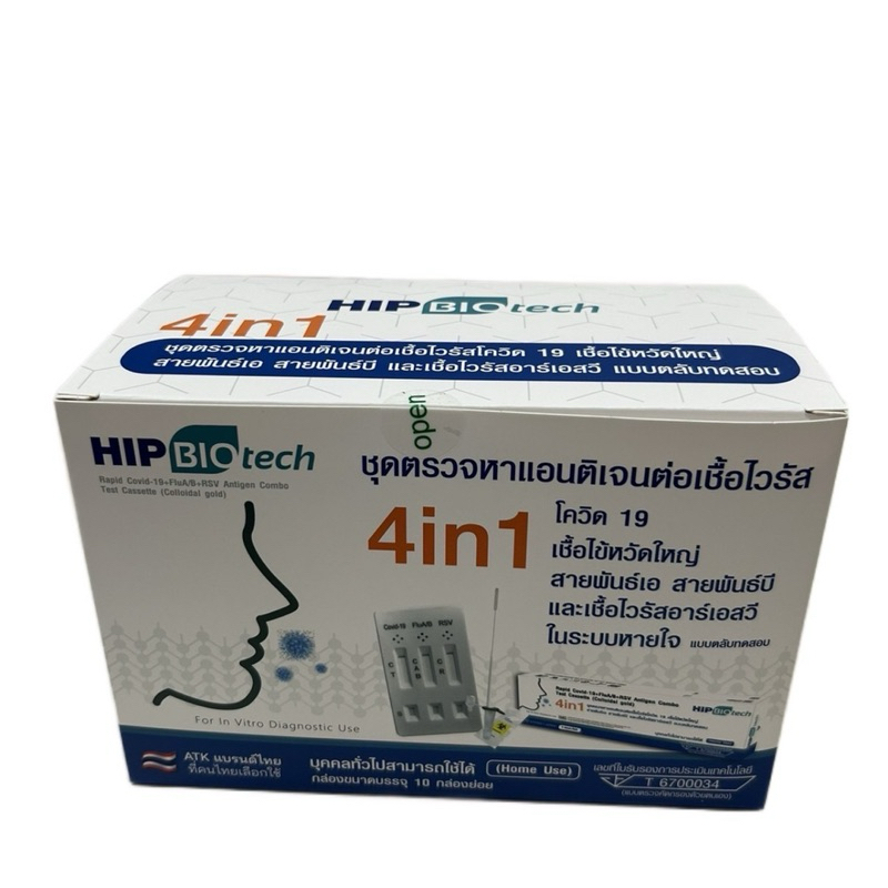 HIP ชุดตรวจไข้หวัด 4 เชื้อ RSV หวัดใหญ่ab Covid [ยกกล่อง 20 ชุด] HIP4in1 ฮิปชุดตรวจไข้หวัดใหญ่โควิดและRSV ที่ตรวจRSV