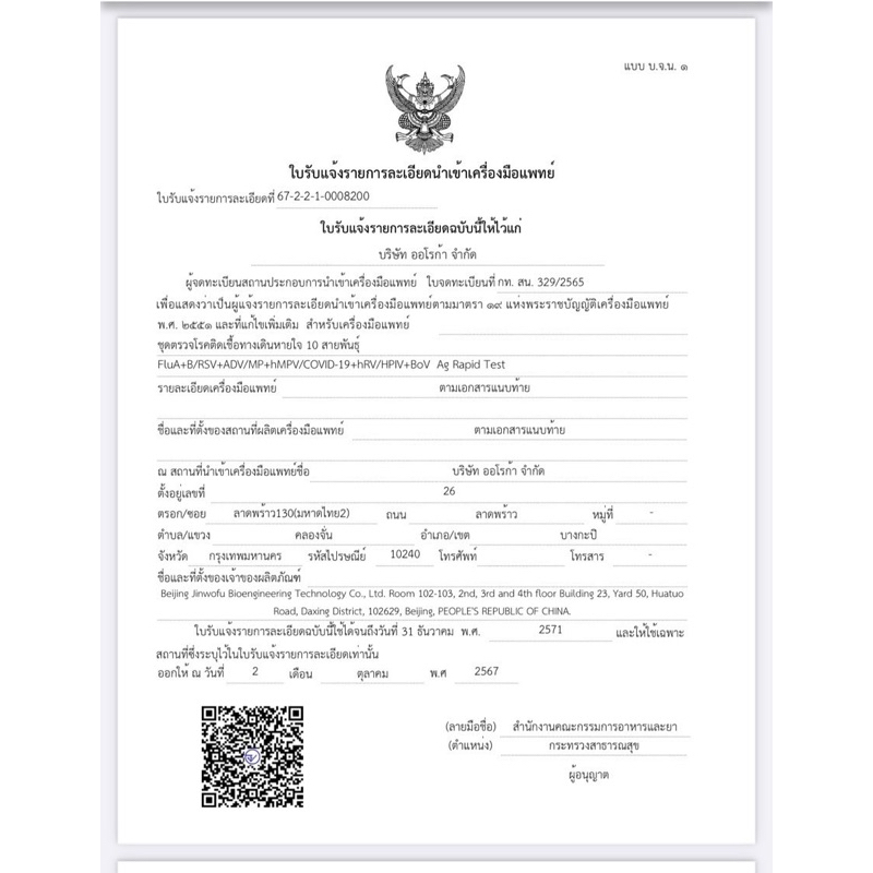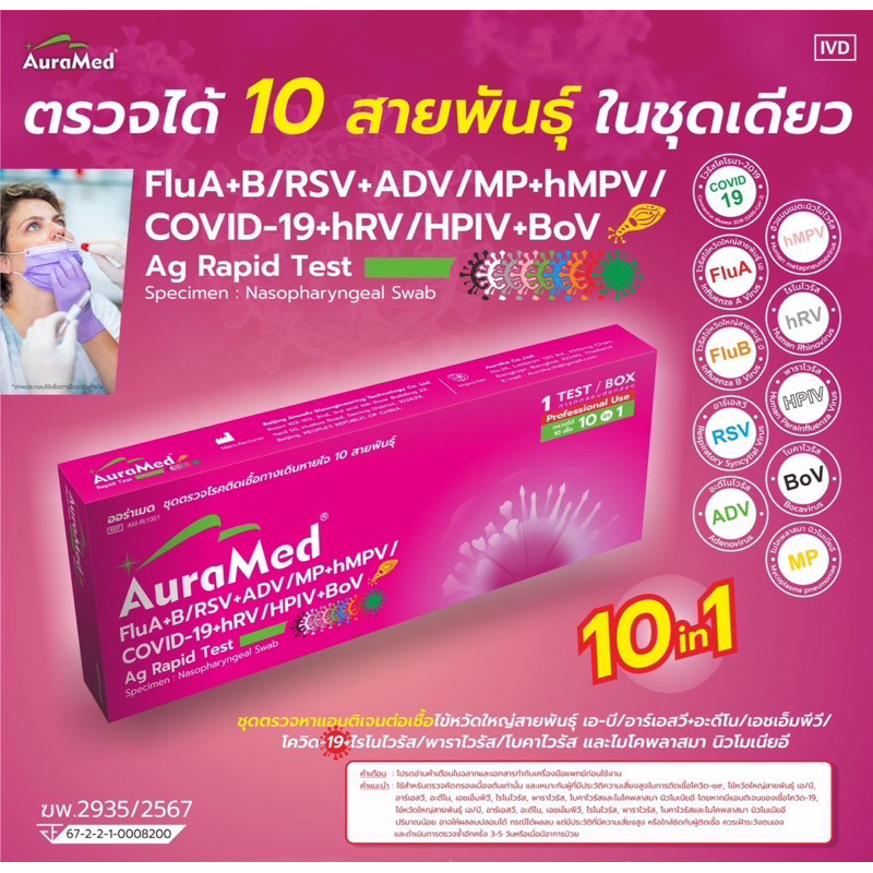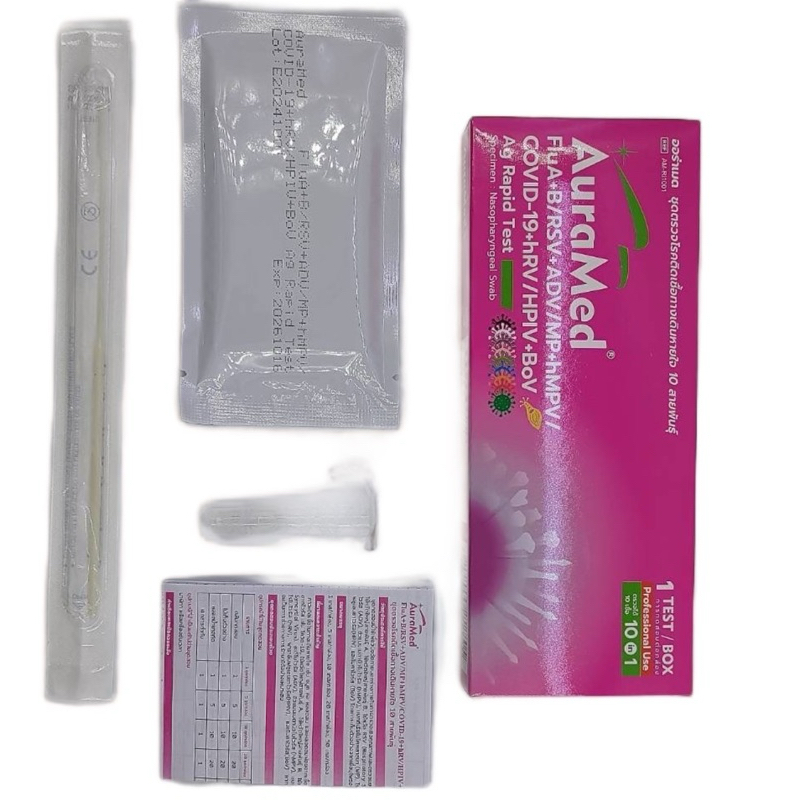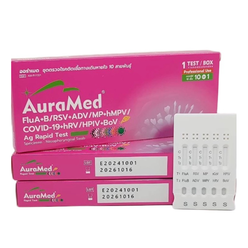 ออร่าเมด ตรวจไข้หวัด 10 สายพันธ์ุ [1กล่อง] ไรโนไวนัส RSV หวัดใหญ่ab อะดีโน hMPV ไมโคพลาสมา Covid พาราไวรัส โบคาไวรัส ATK