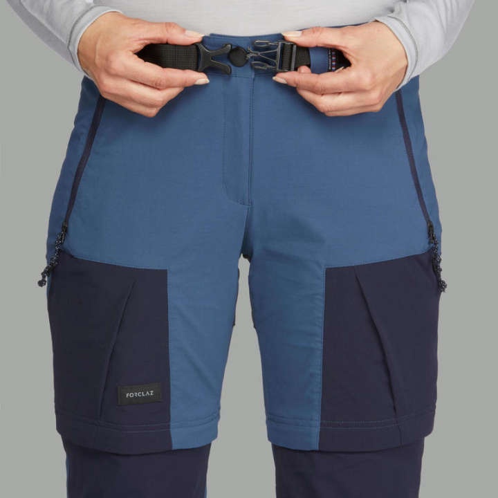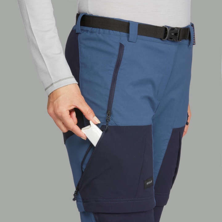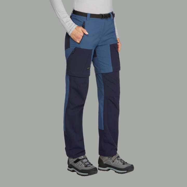 กางเกงขายาวผู้หญิงแบบถอดขาได้สำหรับใส่เทรคกิ้งบนภูเขารุ่น TREK 500 (สีน้ำเงิน)