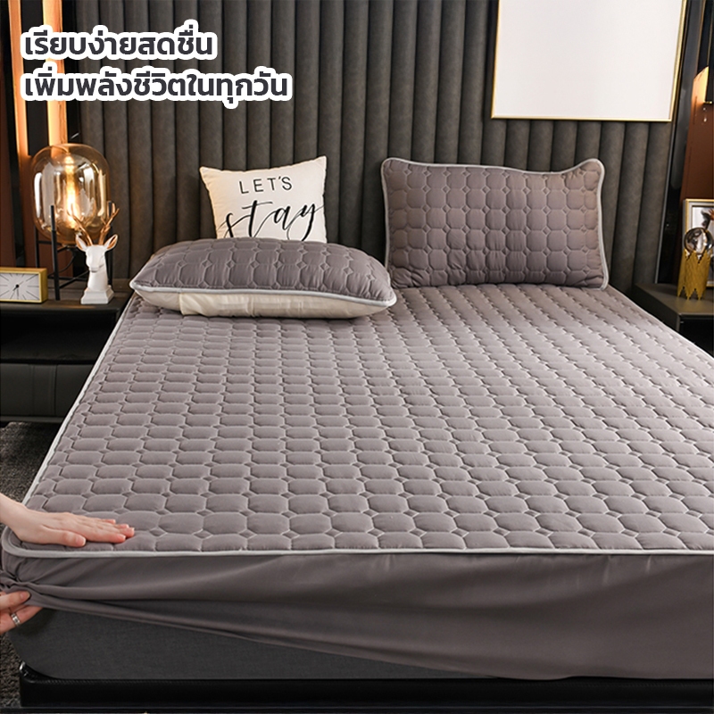 FM NEW ชุดที่นอน 4มุม ผ้าปูที่นอน ผ้าปูที่นอนกันไรฝุ่น ชุดผ้าปูที่นอน 3ฟุต/3.5ฟุต/5ฟุต/6ฟุต ผ้าปูมีหลายสีหลายลายให้เลือก
