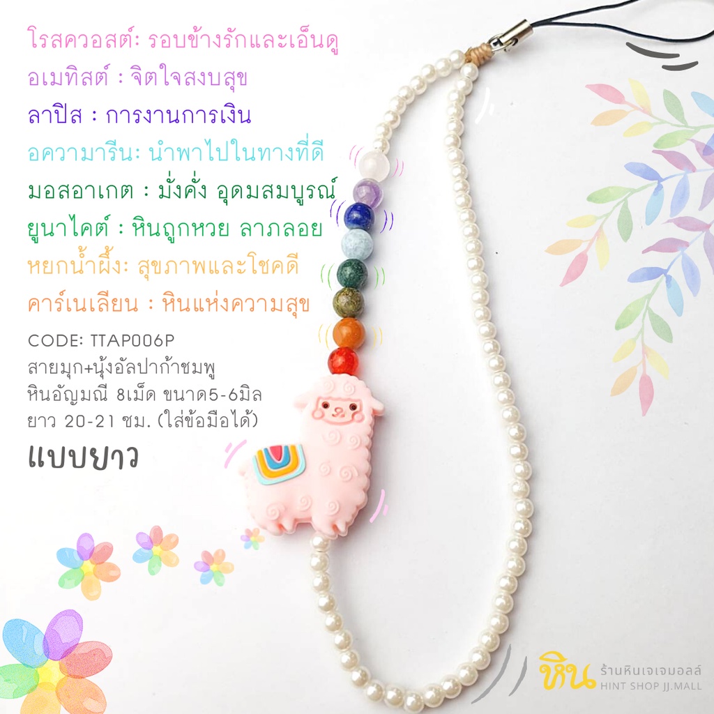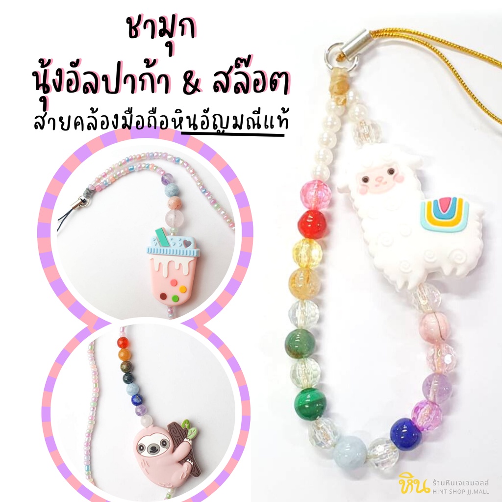 * มาใหม่ * สายคล้องมือถือหินอัญมณีมงคลแท้ เสริมเฮง น้องอัลปาก้าและสล๊อต