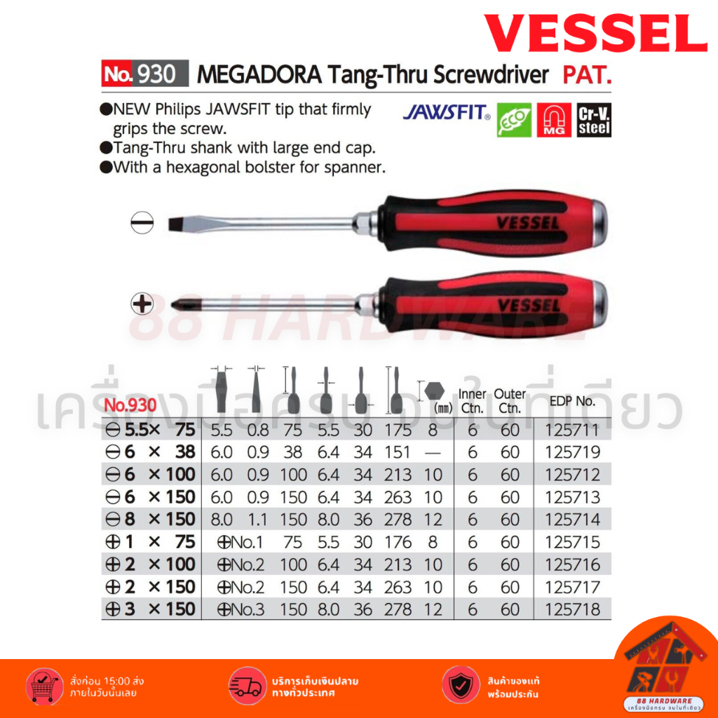 VESSEL ไขควง Megadora รุ่นตอกได้ No.930