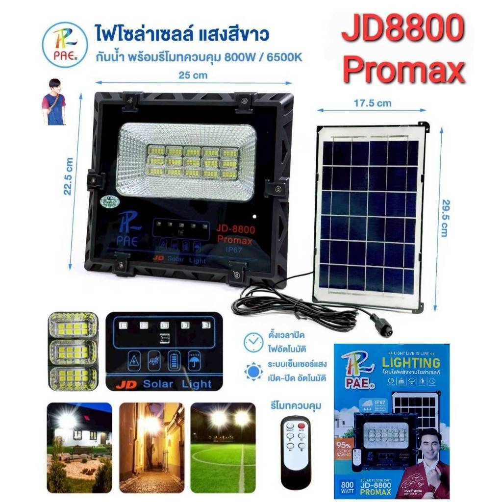 PAE สปอตไลท์ JD-8800 Promax ของแท้800W ไฟโซล่าเซลล์ สปอตไลท์พลังงานแสงอาทิตย์ โคมไฟ กันน้ำกลางแจ้ง Solar light