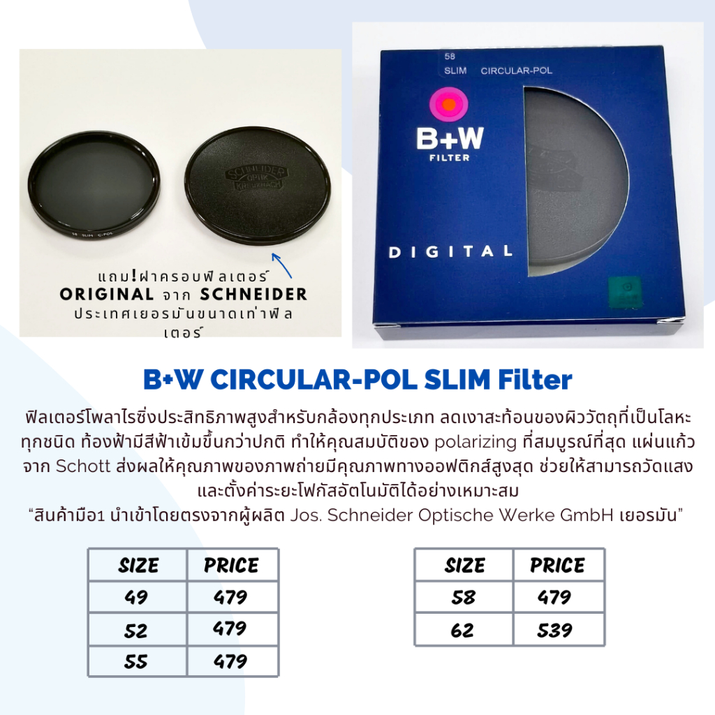 B+W CIRCULAR-POL SLIM Filter ของแท้ ขนาด 49-62 mm