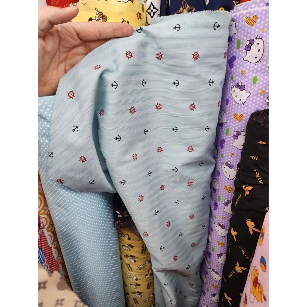ผ้าเมตร คอตตอนผสม dobby เป็ด สมอ เชอรี่ ลาย ถ่ายพร็อพ หน้ากว้าง 110-115ซม