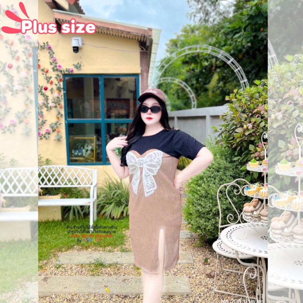 สาวอวบ เดรสทรูโทนโบว์ใหญ่ เดรสคอกลมผ้าท๊อปฟี่ แต่งทรูโทน ผ่าหน้า รุ่นนี้ไม่เคยเอ้าท์ ตามเทรนติดโบว์ งานปัก ระดับพรีเมี่ย