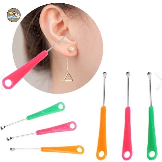 ที่แคะหูสเตนเลส เครื่องมือทำความสะอาดหู หลากสี ด้ามพลาสติก