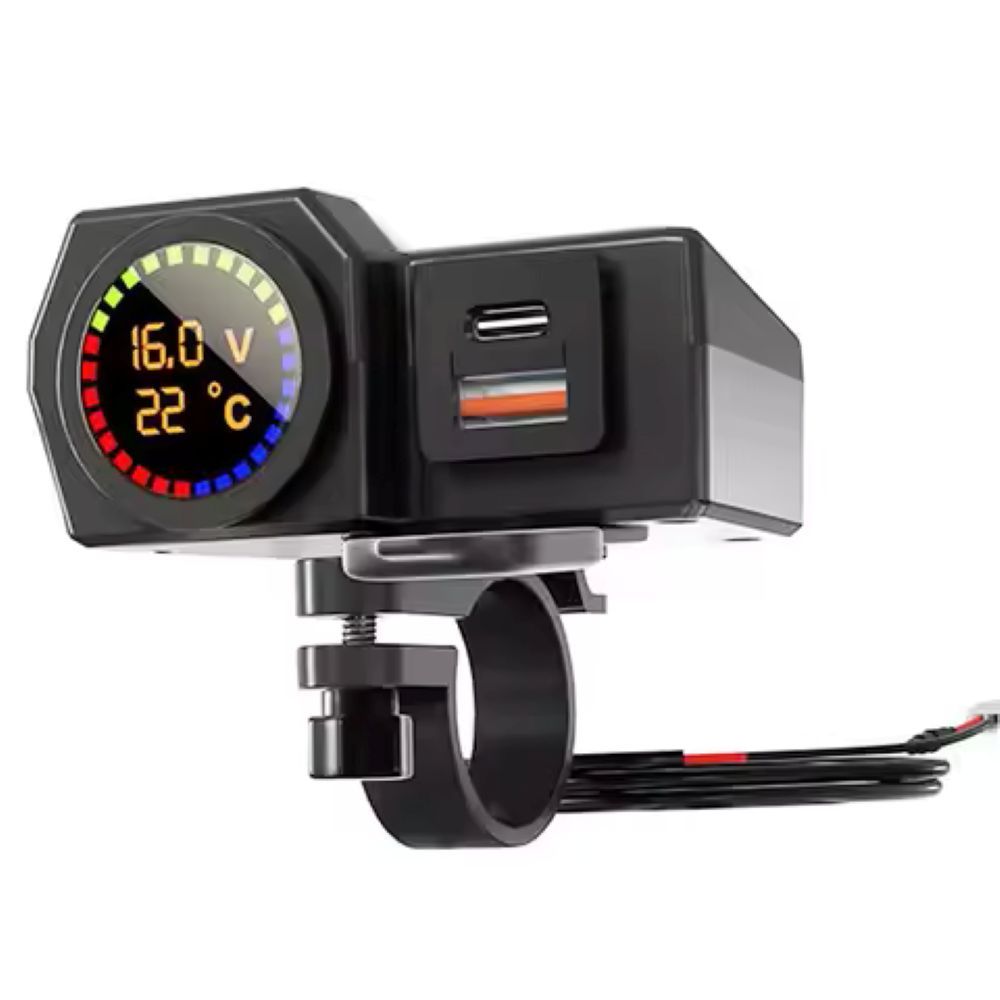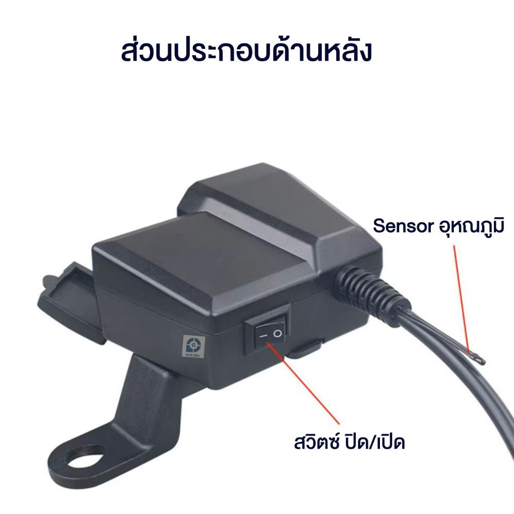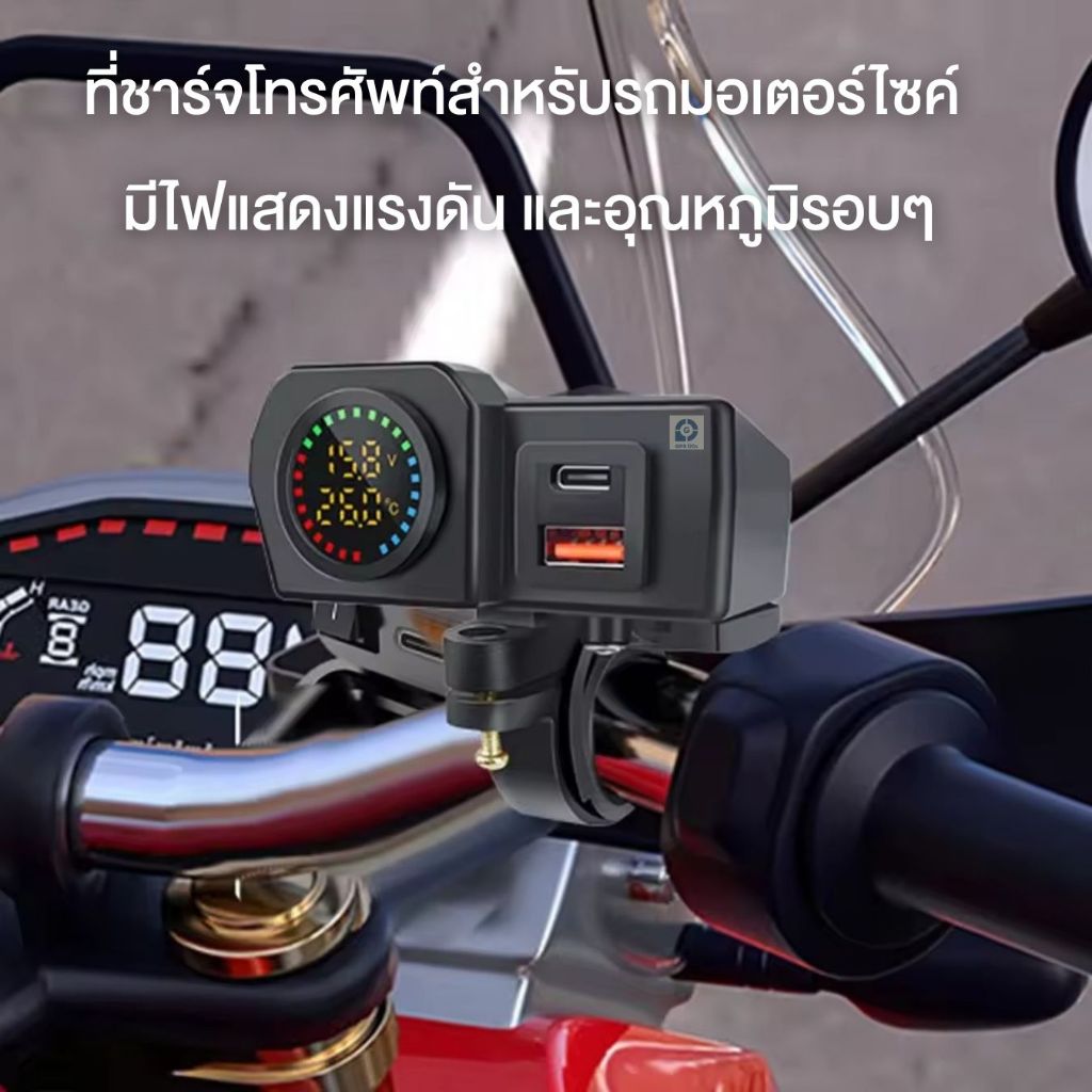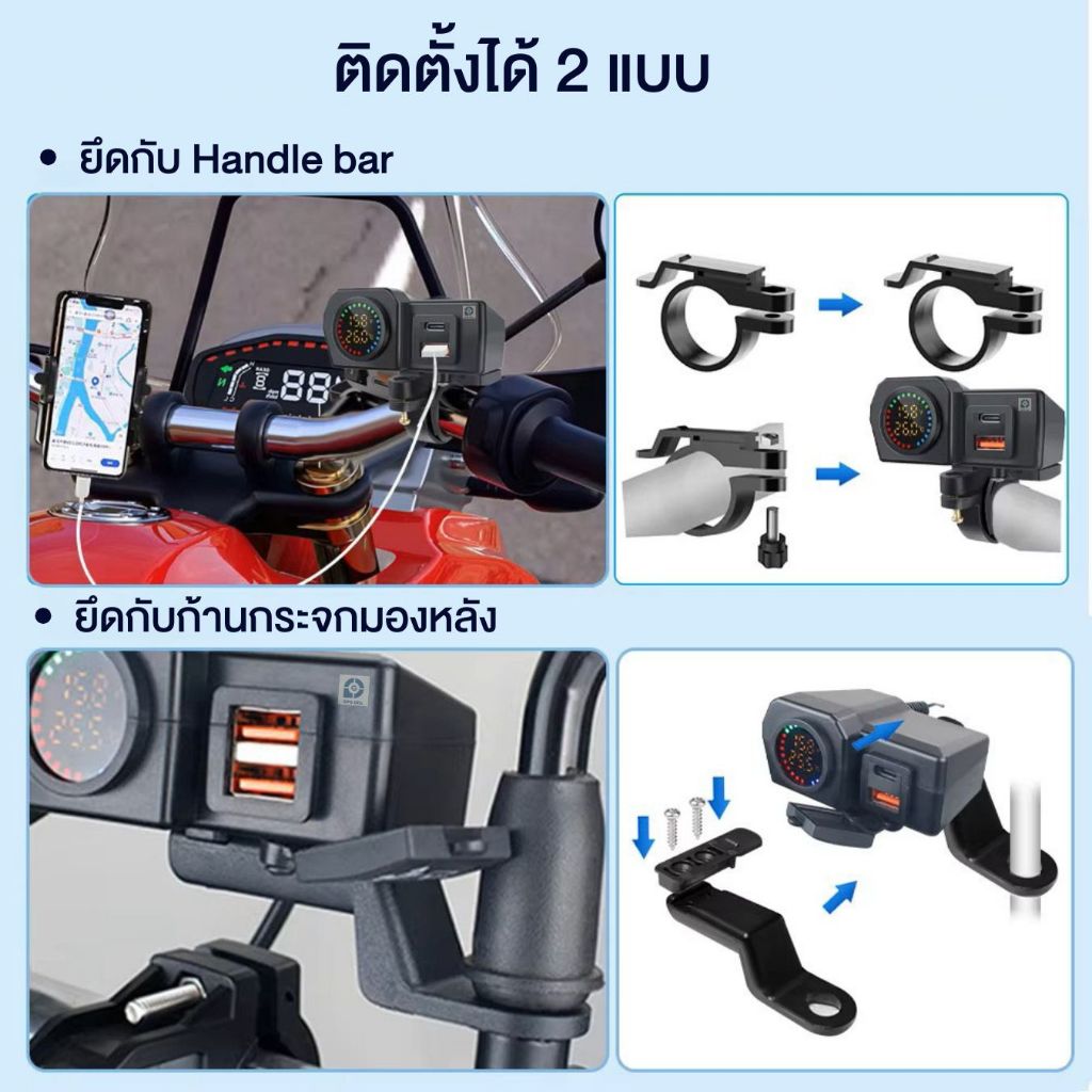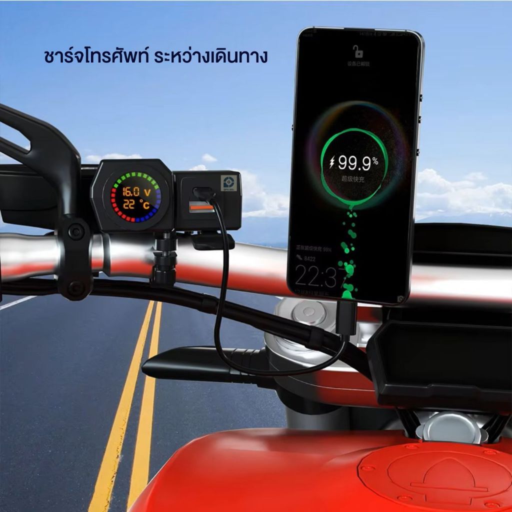 gpsdd Port USB คู่แบบชาร์จเร็ว สำหรับรถมอเตอร์ไซค์ มีไฟแสดงแรงดันและแสดงอุณหภูมิ