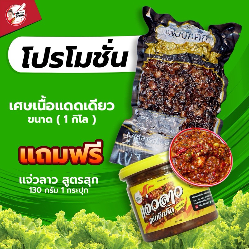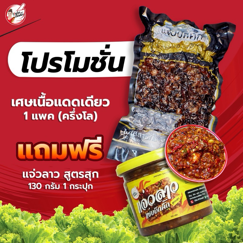 {ส่งฟรี} เศษเนื้อโคขุนแดดเดียวแถมแจ่วสุก130กรัม