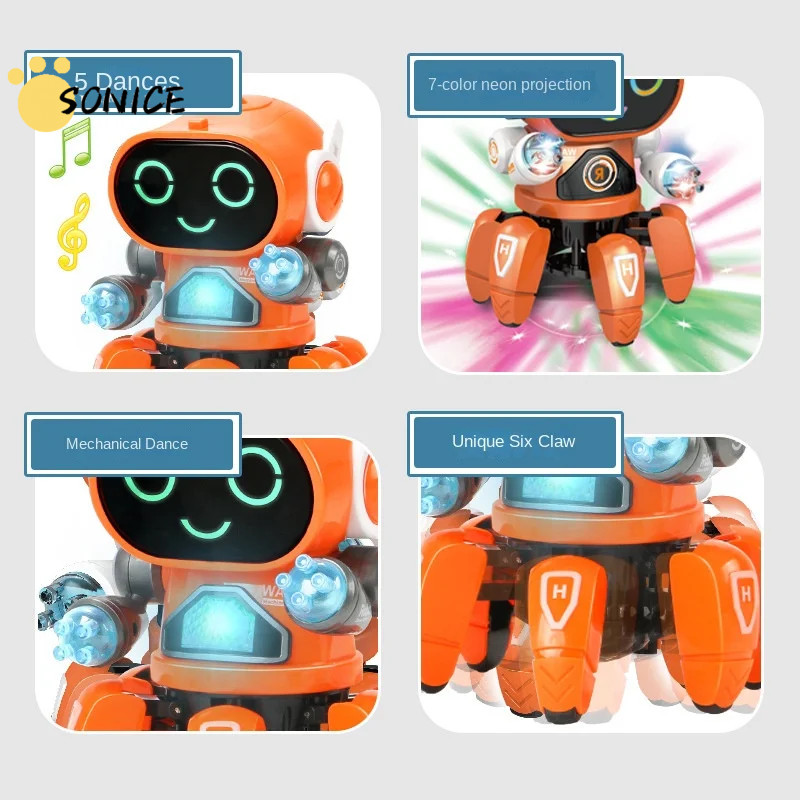 ไฟ เต้นหุ่นยนต์เดินเต้นอิเล็กทรอนิกส์หุ่นยนต์ของเล่นหกขาสมาร์ทหุ่นยนต์โต้ตอบสหายของเล่นหกกรงเล็บหุ่นยนต์ร้องเพลงและเต้นรําหุ่นยนต์ของเล่นสําหรับเด็กพร้อมเพลงเต้น