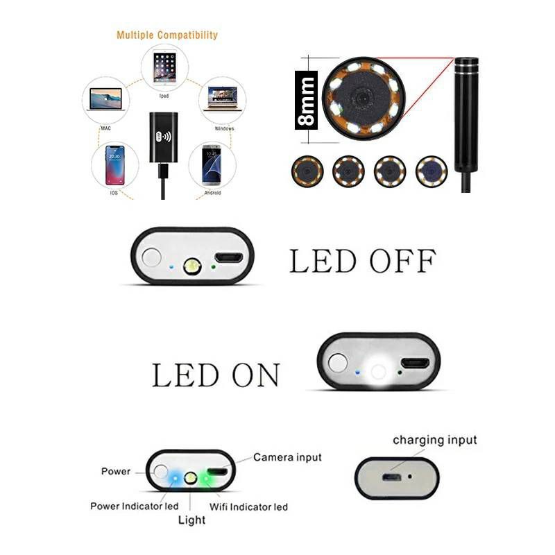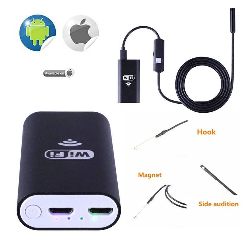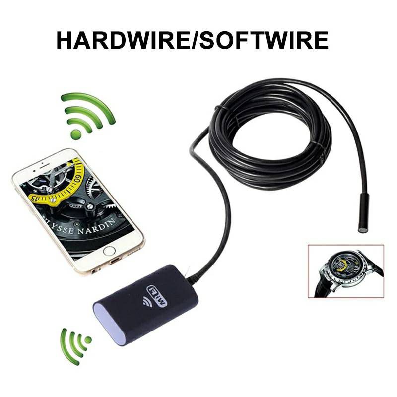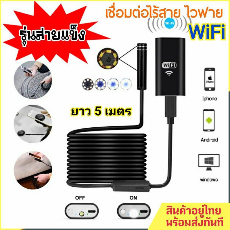 *รุ่นสายแข็ง*กล้องงู WiFi Endoscope ip67 ชาร์จไฟได้ สายยาว 5M เชื่อมไวฟายและสายได้ เชื่อมต่อมือถือและPC กันน้ำ ไฟ 6 LED