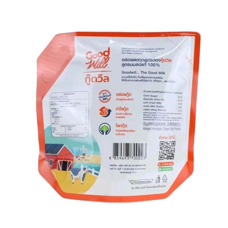 [จัดเซ็ท 4ถุง] นมข้นหวาน ตรากู๊ดวิล 2กก./ถุง นมข้นกู๊ดวิล
