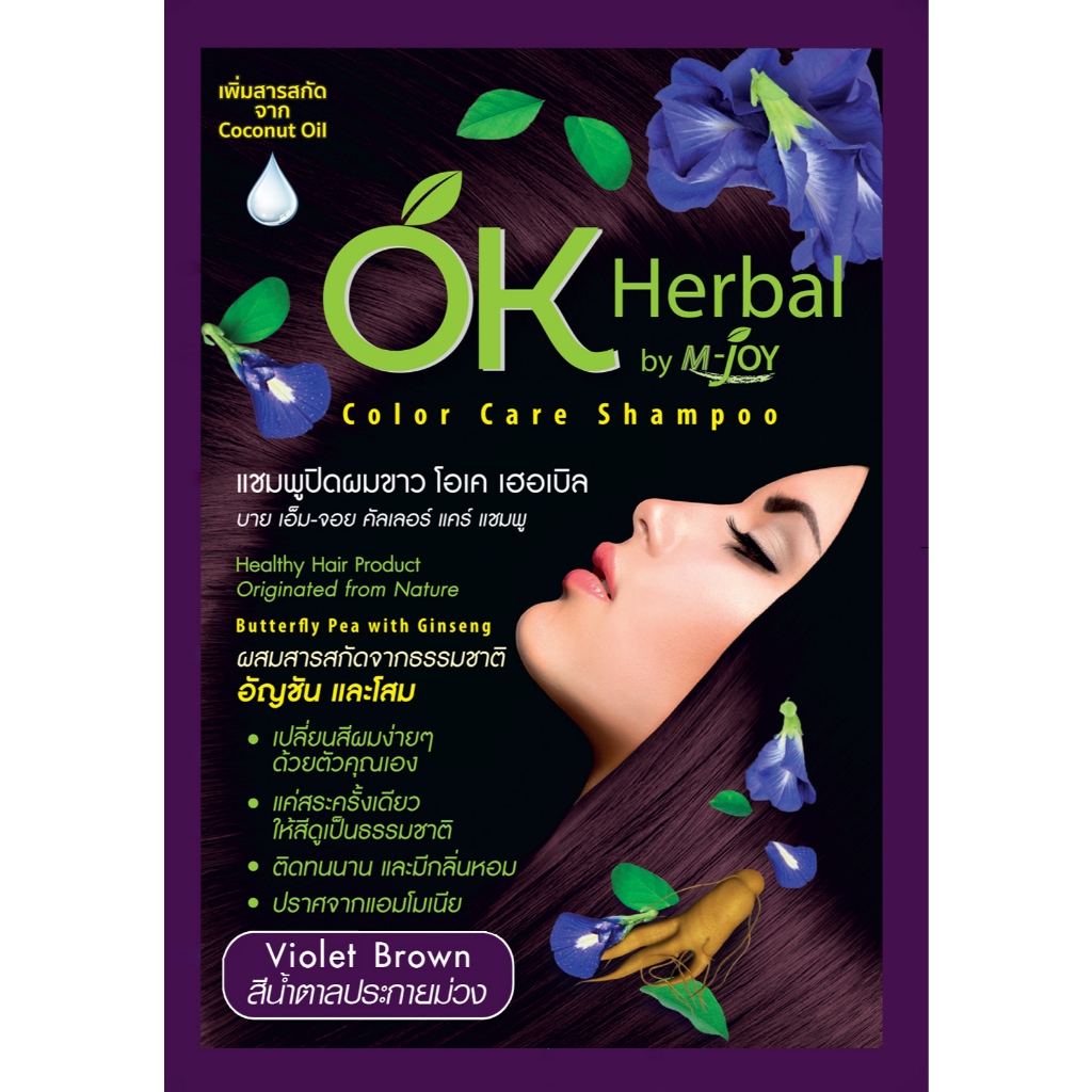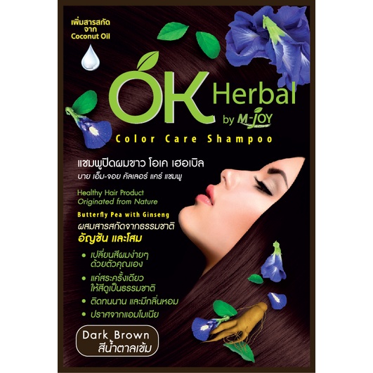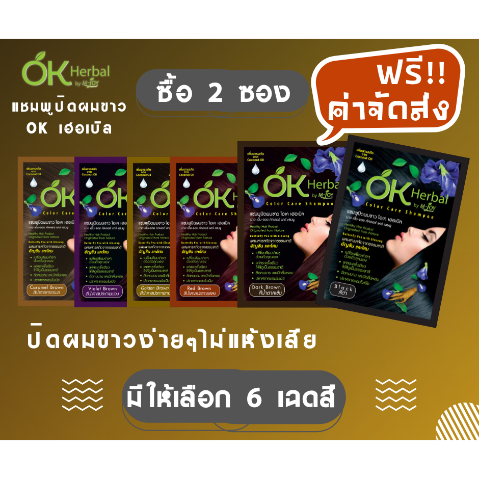 [ซื้อ 2 ซอง ฟรี!! ค่าจัดส่ง] แชมพูปิดผมขาว OK Herbal 30 มล (มีให้เลือก6สี)