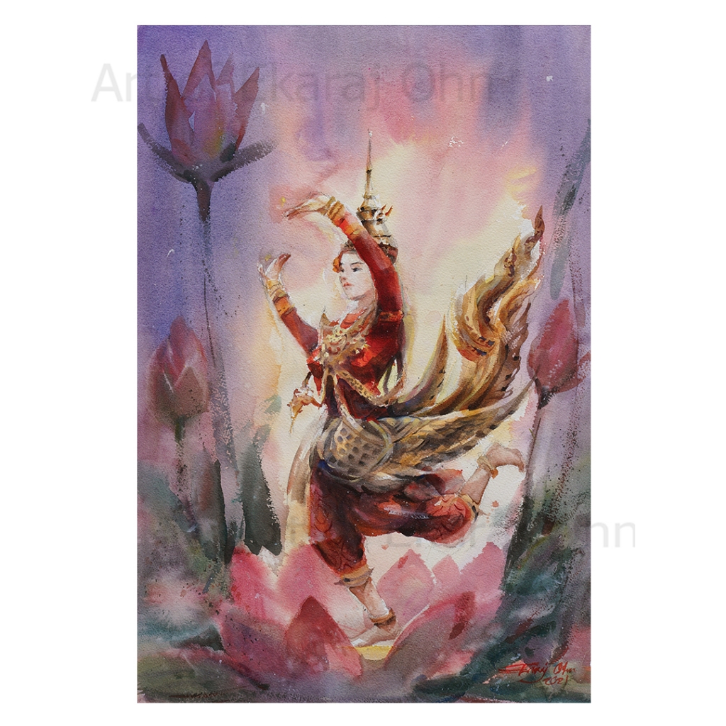 งานพิมพ์บนผ้าใบ Canvas ลายนางกินรีฟ้อนรำ Dance of Kinari