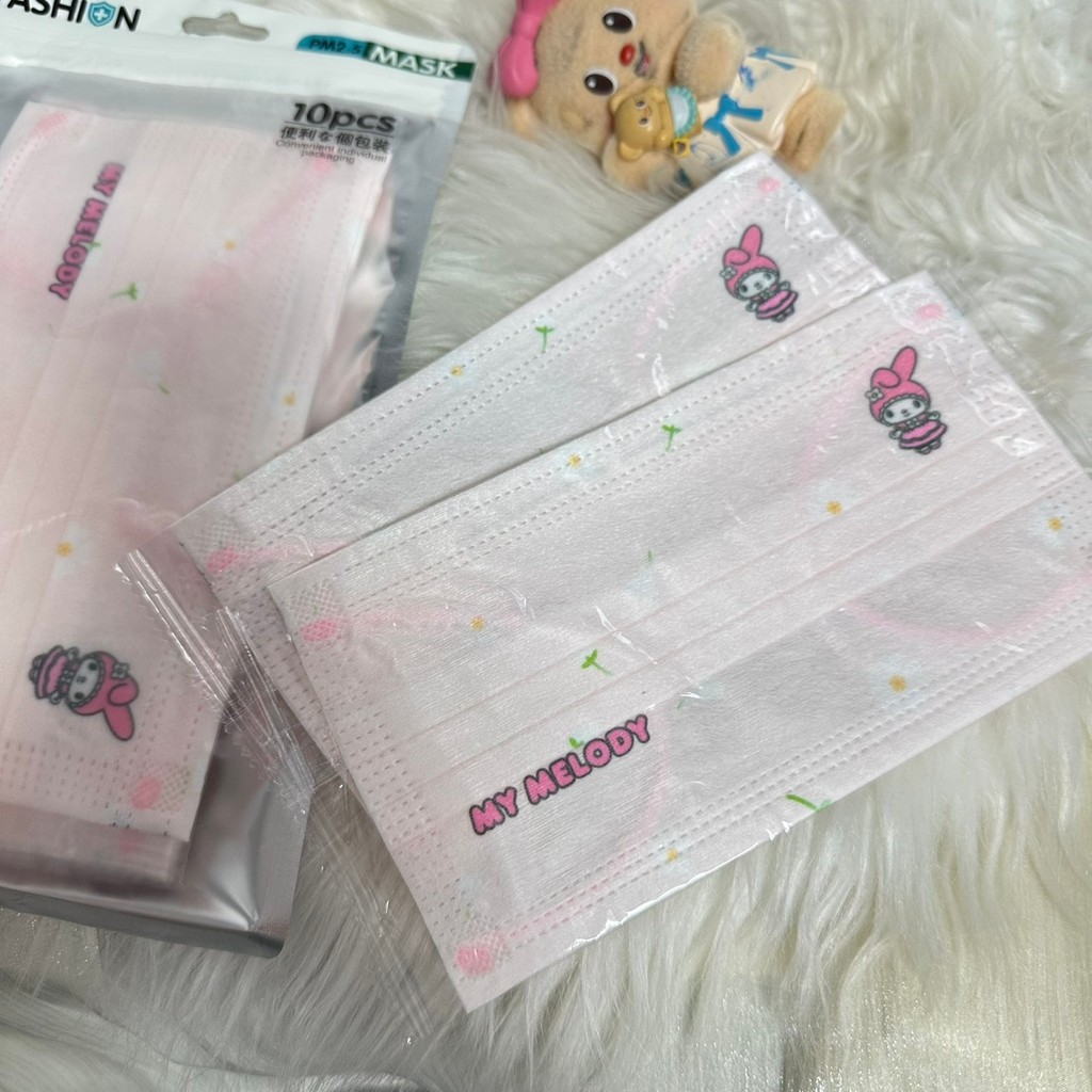 【พร้อมส่งในไทย】แมสสีพาสเทล แบบซีนแยกชิ้น1แพ็ค10ชิ้น ลายกาตูนย์น่ารักมากๆ หนา3ชั้นระบายอากาศได้ดี ไม่อึดอัด