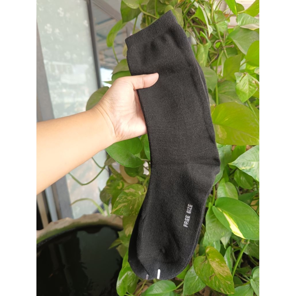 (12คู่) ถุงเท้าสีดำ ยางครึ่งแข้ง ถุงเท้าทหาร พื้นธรรมดา งานไทย