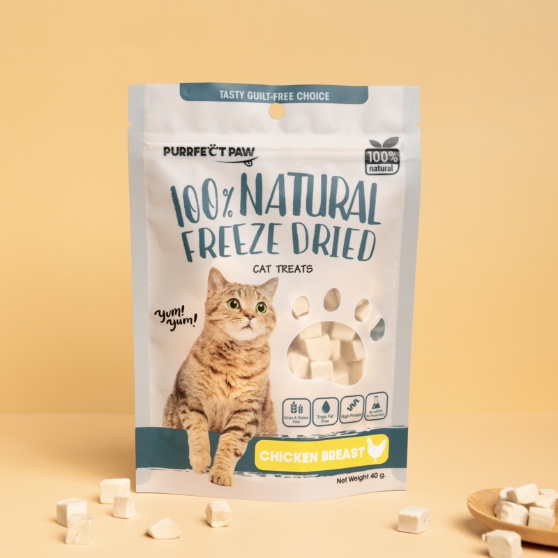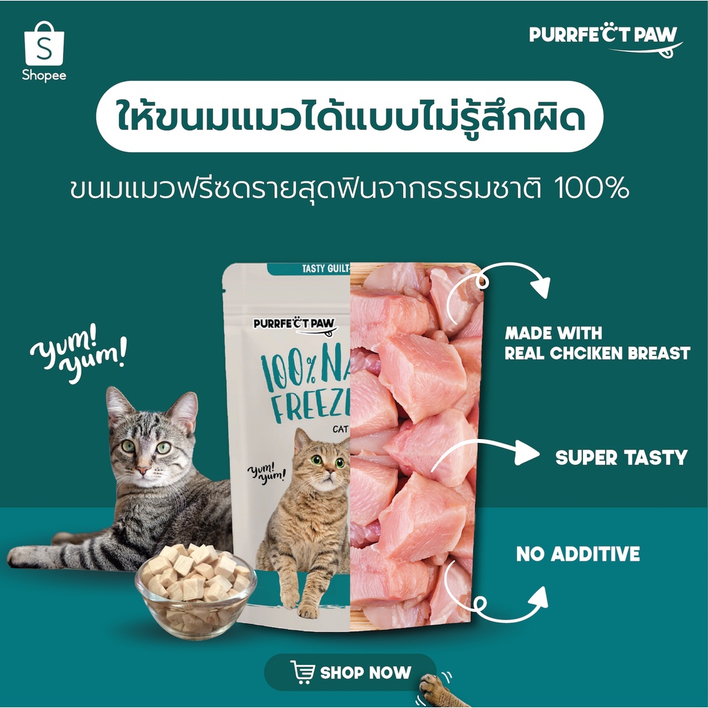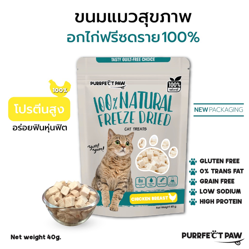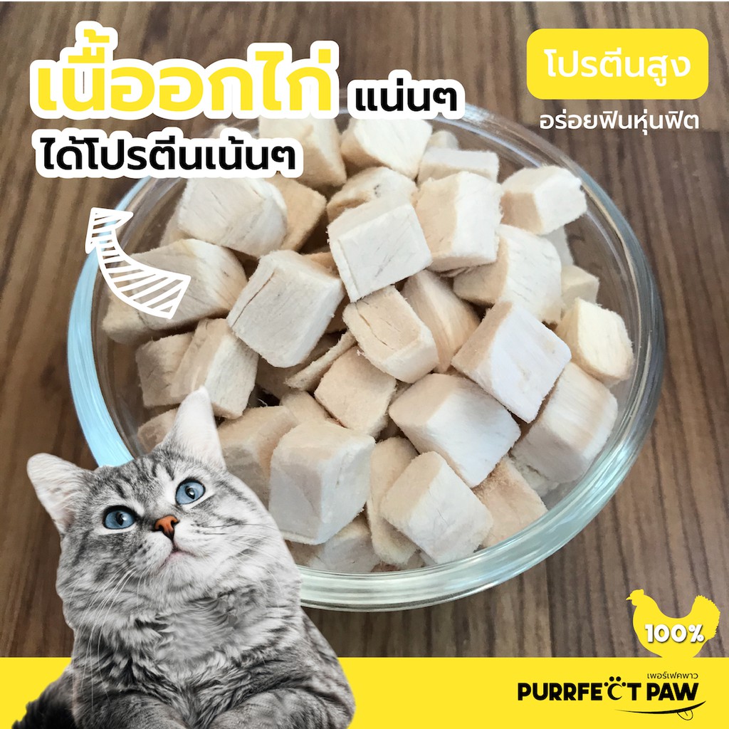🐾 ขนมแมว อกไก่ฟรีซดราย 100%(Purrfect Paw) ขนมแมวฟรีซดราย ดีต่อสุขภาพ ขนมแมวไม่เค็ม Freeze Dried แมว