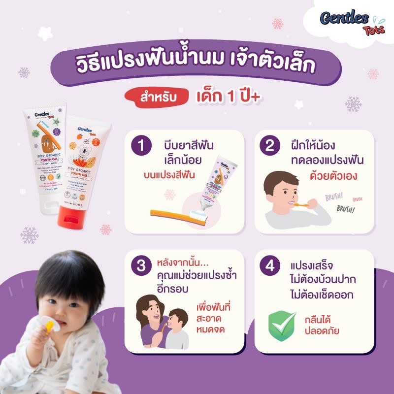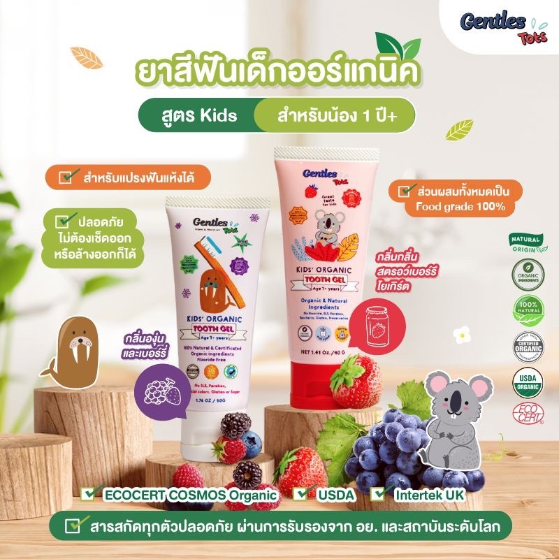 Gentles Tots ยาสีฟันเด็ก ออร์แกนิค ก ลืนได้ ปลอดภัย ยาสีฟันอร่อย สูตร Kids สำหรับ 1ปี+ (กลิ่นสตรอเบอรี่โยเกิร์ต)