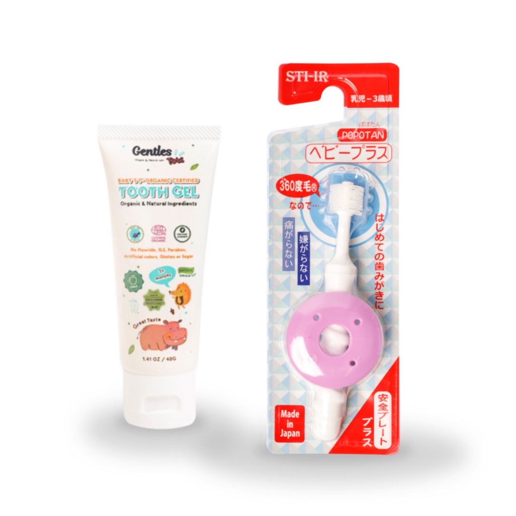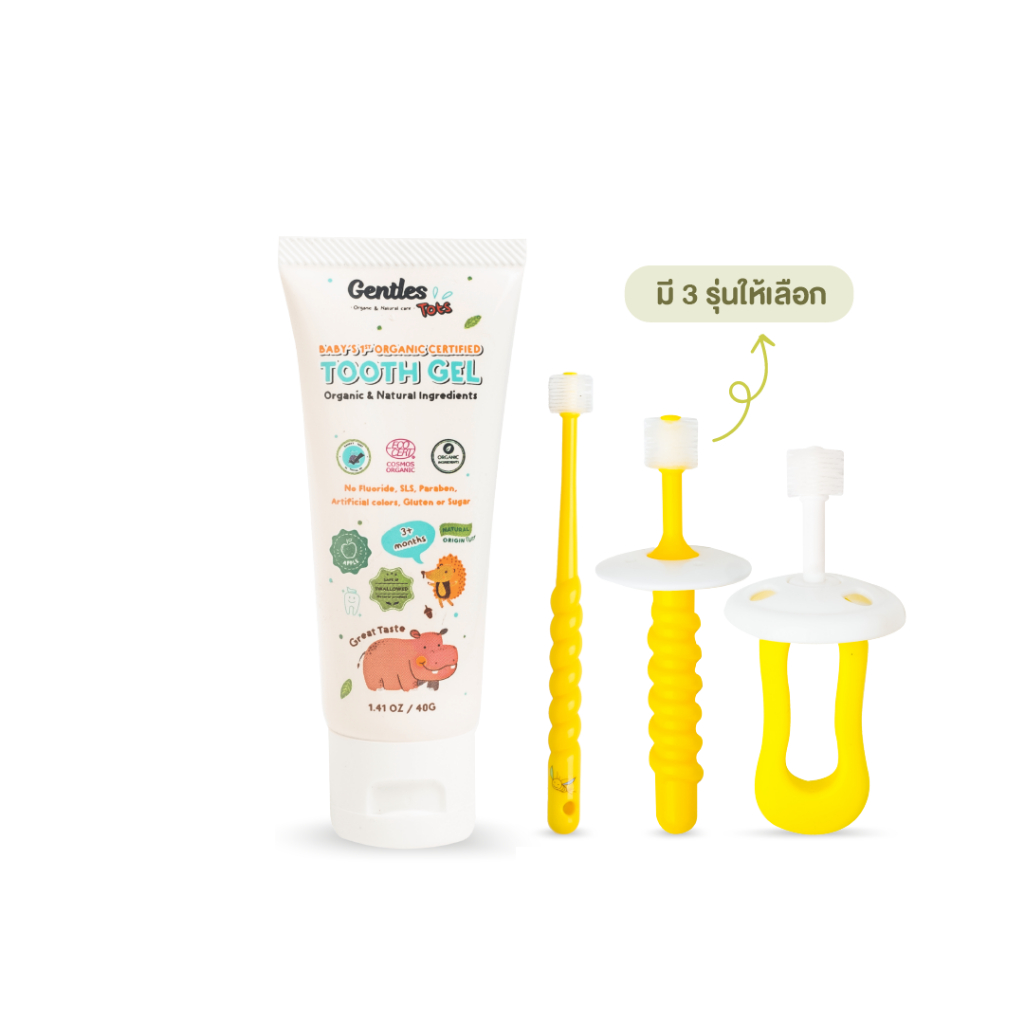 Gentles-tots ชุดเซทฟันซี่แรก ยาสีฟันสูตร Baby+แปรง 360 องศา(มีแปรง 3 รุ่นให้เลือกนะค่า)