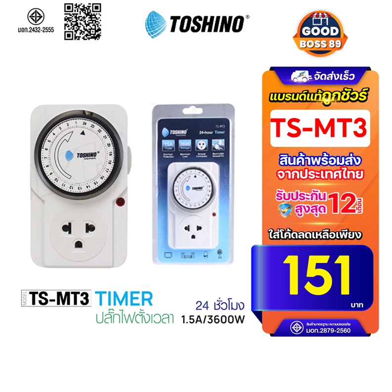 [ใช้โค้ด เหลือ164บ.] TOSHINO TIMER รุ่น TS-MT3 นาฬิกาตั้งเวลา แบบ 24 ชั่วโมง goodboss89