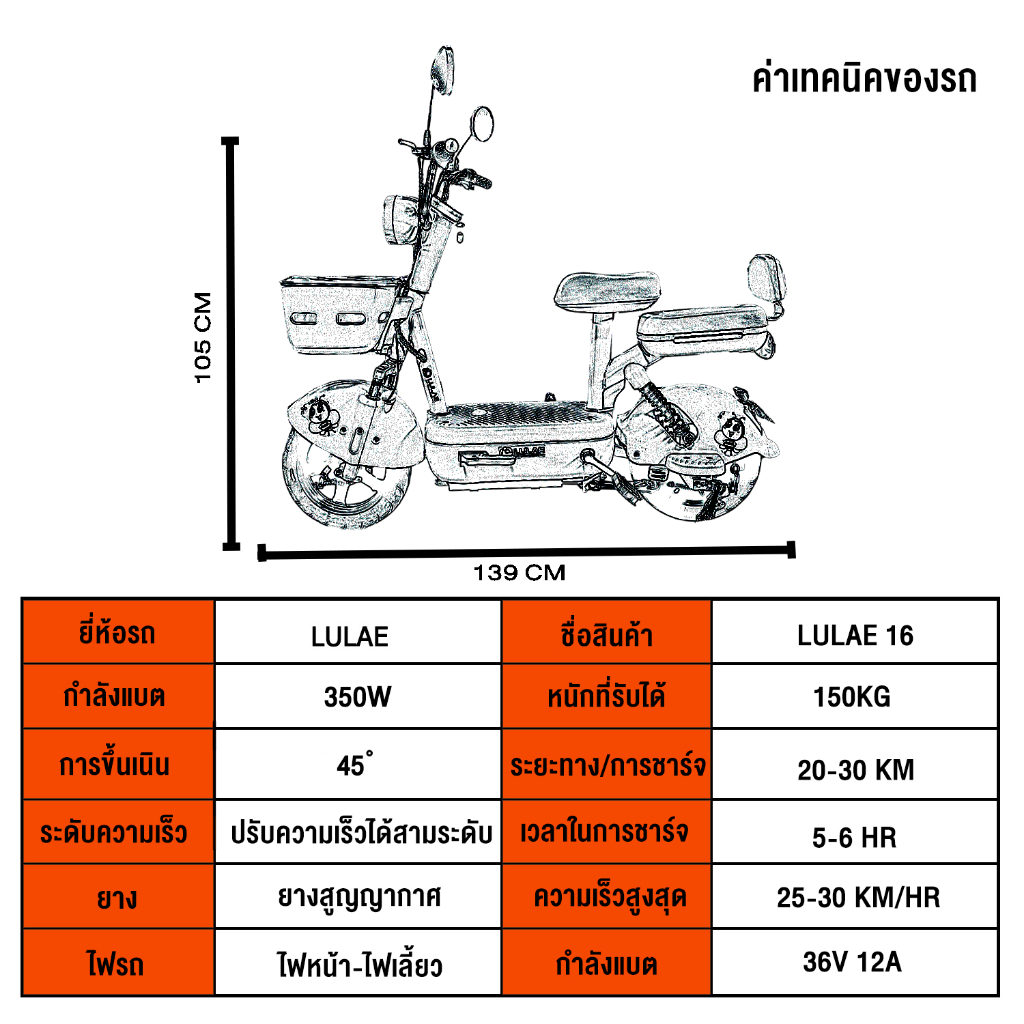 LULAE V16 รถไฟฟ้า ผู้ใหญ่ จักรยานไฟฟ้า electric bike จักรยาน สกูตเตอร์ไฟฟ้า รถ มอเตอร์ไซด์ 36v 12a