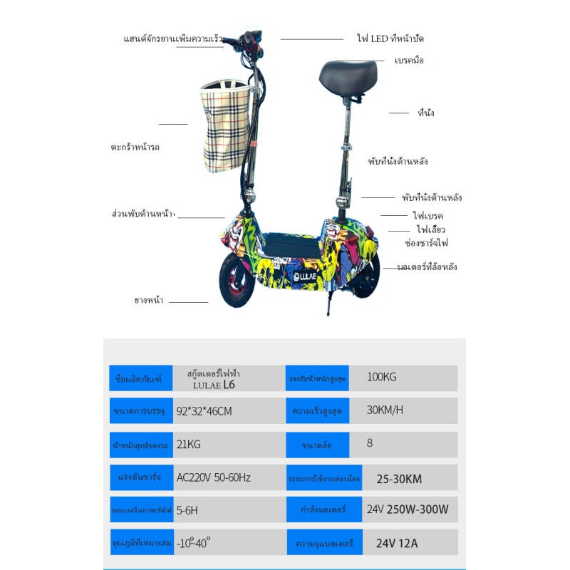LULAE L6 สกู๊ตเตอร์ไฟฟ้า electric scooter ความจุของแบตเตอรี่ 24V12A มอเตอร์ 250W[โค้ดLULAE60][ลดสูงสุด 600]