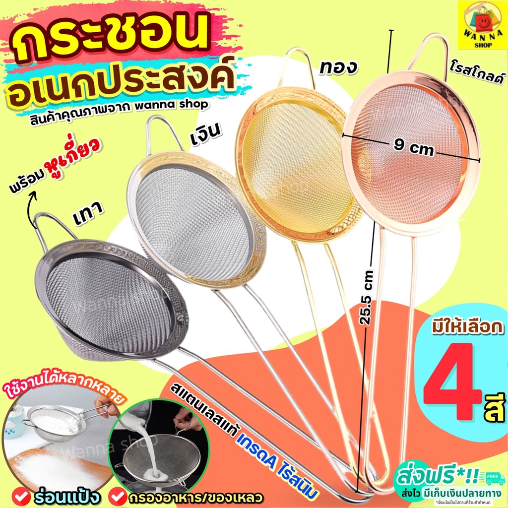 🔥ส่งฟรี🔥 กระชอนสแตนเลส WANNA มีให้เลือกถึง4สี! ที่ร่อนแป้ง ที่ร่อนไอซิ่ง กระชอนกรอง กระชอนร่อนแป้ง ตะแกรงร่อนแป้ง กระชอน